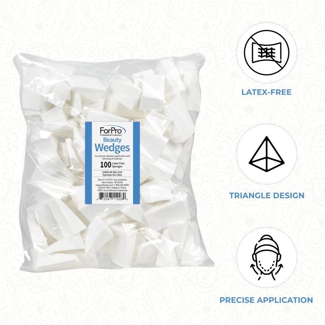 ForPro Professional Collection Beauty Wedges, Latex Free Foam Sponges, Makeup Blenders for Powder and Liquid Makeup, 100-Count