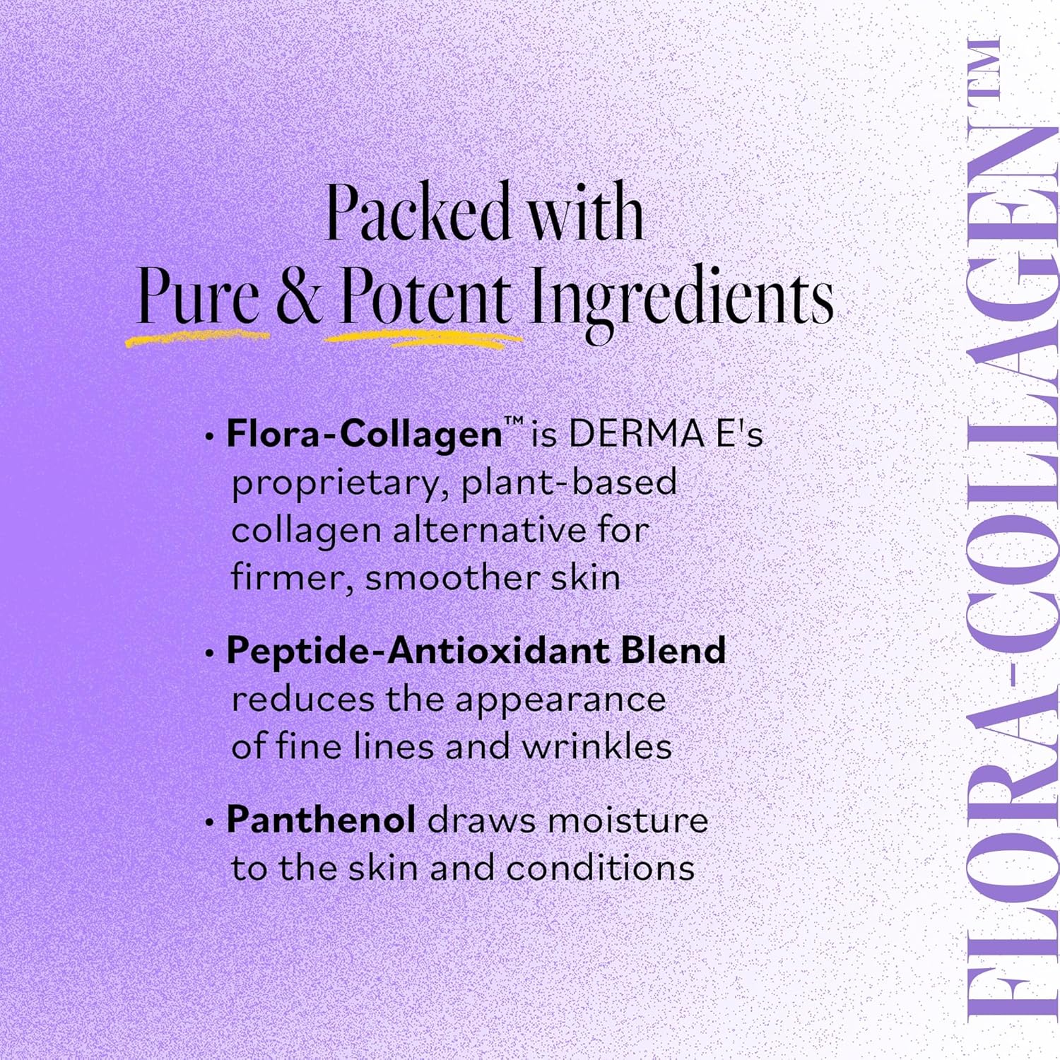 DERMA E Advanced Peptides and Vegan Flora-Collagen Serum – Double Action Collagen Face Cream with Peptide Complex – Intensely Hydrating Serum for Lines, Wrinkles and Redness, 2 oz