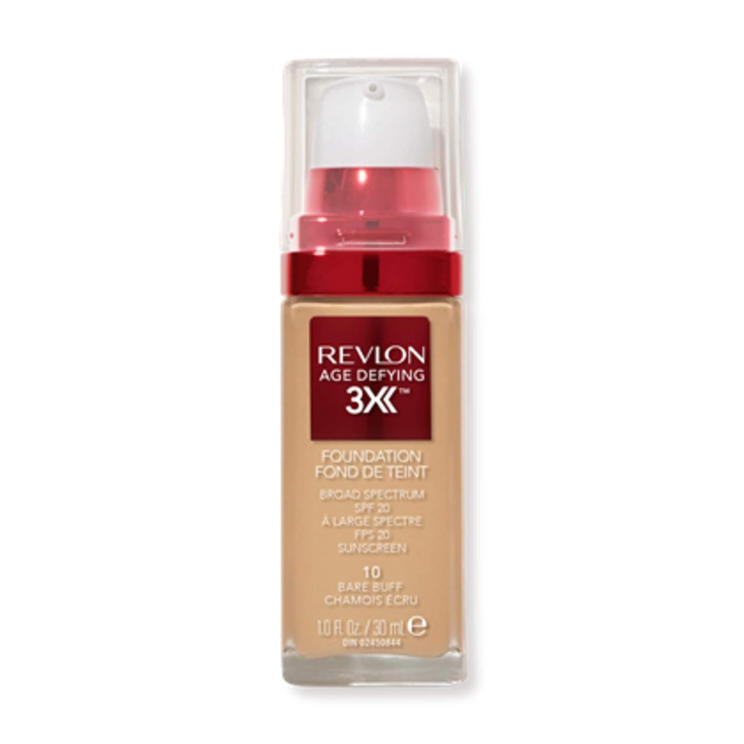 Revlon Liquid Foundation, Age Defying 3XFace Makeup, Anti-Aging and Firming Formula, SPF 30, Longwear Medium Buildable Coverage with Natural Finish, 010 Bare Buff, 1 Fl Oz