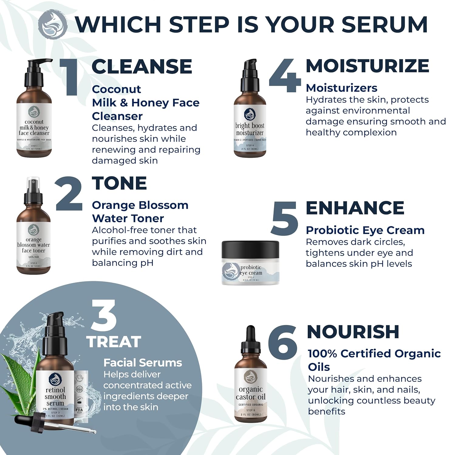 - SMOOTH SKIN - Filled with moisturizers, Our Retinol Facial Serum helps to smooth uneven skin tones and complexion, increase collagen production, reduce pores and fade redness, treats scars.