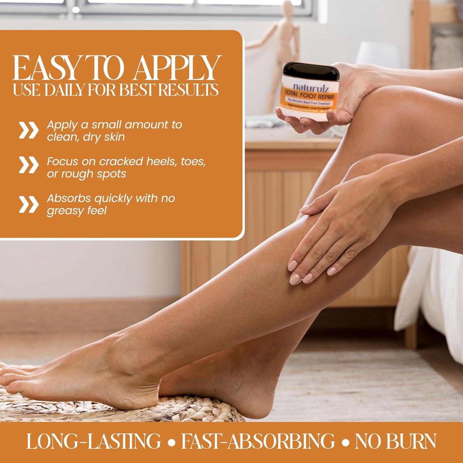 - Nourishing Foot Cream for Dry, Cracked Heels and Feet: Naturulz Total Foot Repair is a hydrating foot cream that improves the appearance of dry, rough skin on heels and feet. Perfect for daily care, it softens and smooths dry areas on feet, elbows, knees, and hands. This rich yet lightweight cream blends easily into all skin types and is ideal for anyone looking for simple, effective foot care as part of a wellness or self-care routine.