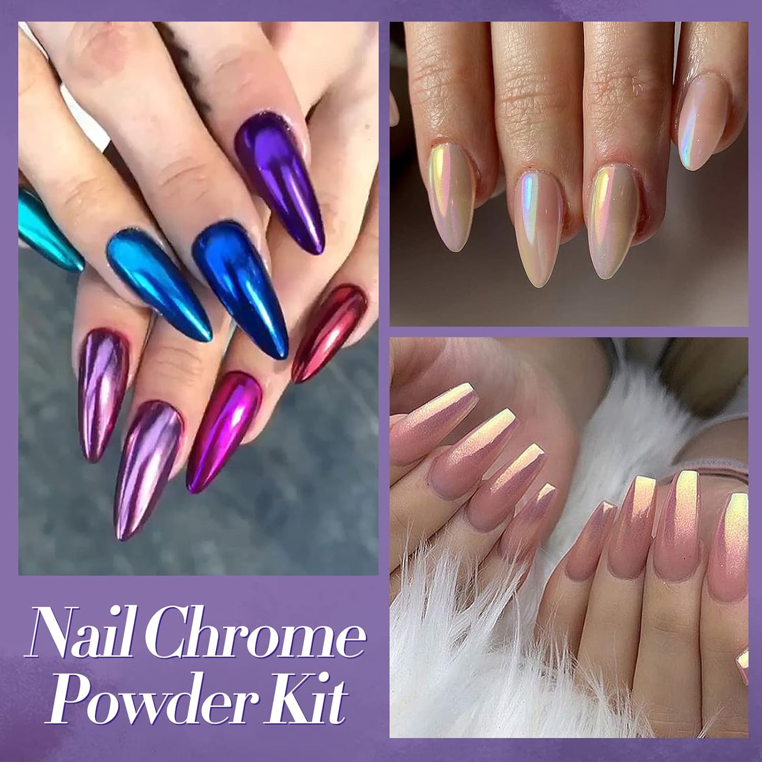 - MULTIPLE EFFECTS - Chrome effect when you apply it on black base gel, pearlescent effect and iridescent nail when you apply it on white base gel. Ultra fine powder takes great chrome and chameleon pearlescent effect. Itmade of 100% pure synthetic resin powder, non-toxic, long-lasting. Smooth and non-grainy texture.
