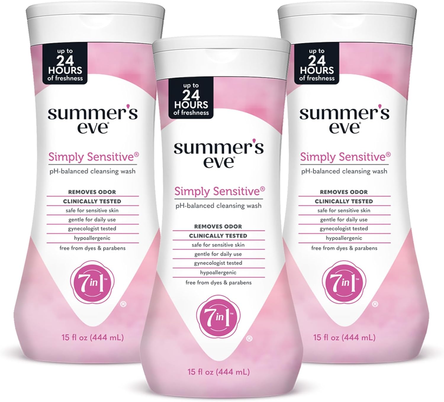 - Summer’s Eve Simply Sensitive Daily Gentle Feminine Wash removes odor-causing bacteria