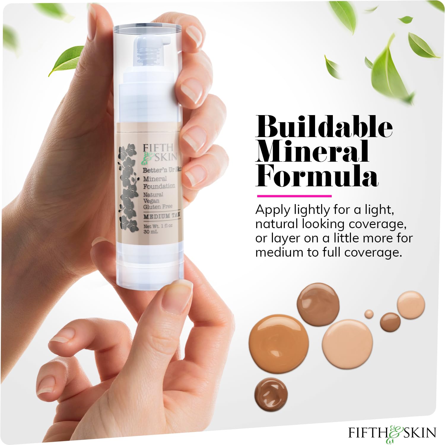 Fifth & Skin: Better’n Ur Skin Liquid Foundation (MEDIUM TAN) - Natural, Organic, Vegan, Cruelty-Free - Gluten-Free Beauty with Buildable Coverage and Palm-Free Luxury - 1 oz