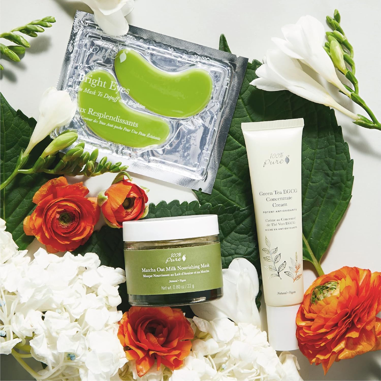 100% PURE Bright Eyes Masks Under Eye Skincare Wrinkle Smoothing Replenishment Diminish Dark Circles, Puffiness - Hydrating & Moisturizing Patches For Tired Eyes & Morning Bags - Vegan - 1 Pack