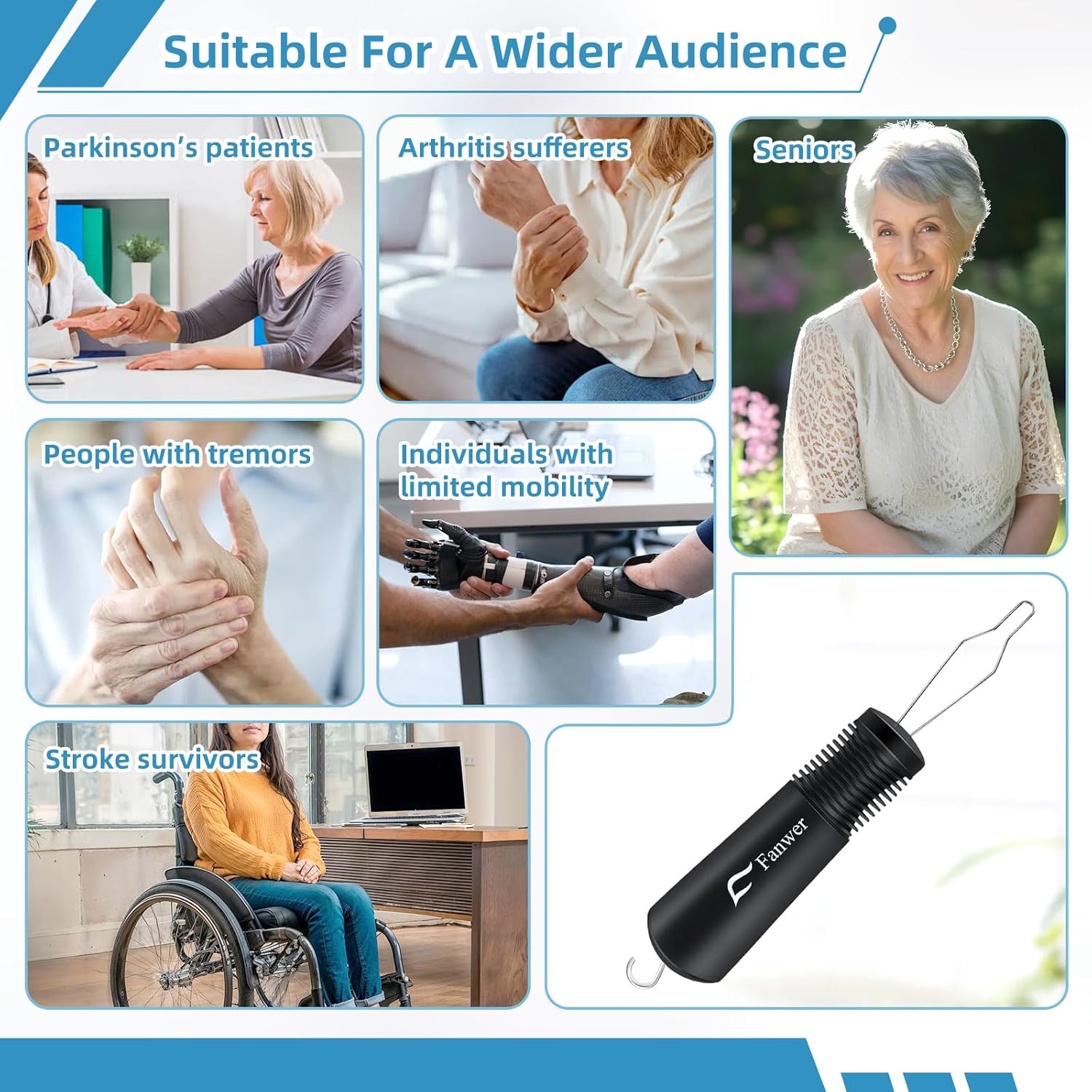 - ♛ Supportive Design: These button fastener tool are support for reduced hand strength. Offer invaluable support for seniors seeking independence in dressing and individuals dealing with conditions like arthritis, disable elderly, stroke hand or carpal tunnel syndrome