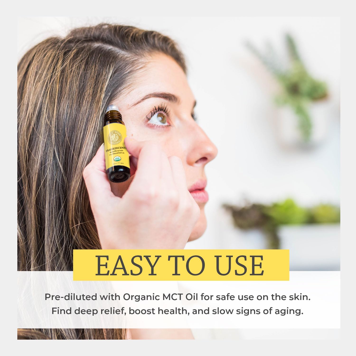 Silk Road Organic Frankincense Serrata Essential Oil Roll on, 100% Pure USDA Certified Aromatherapy for Skin Health, Aging, Fine Lines & Body Aches - 10 ml Roller