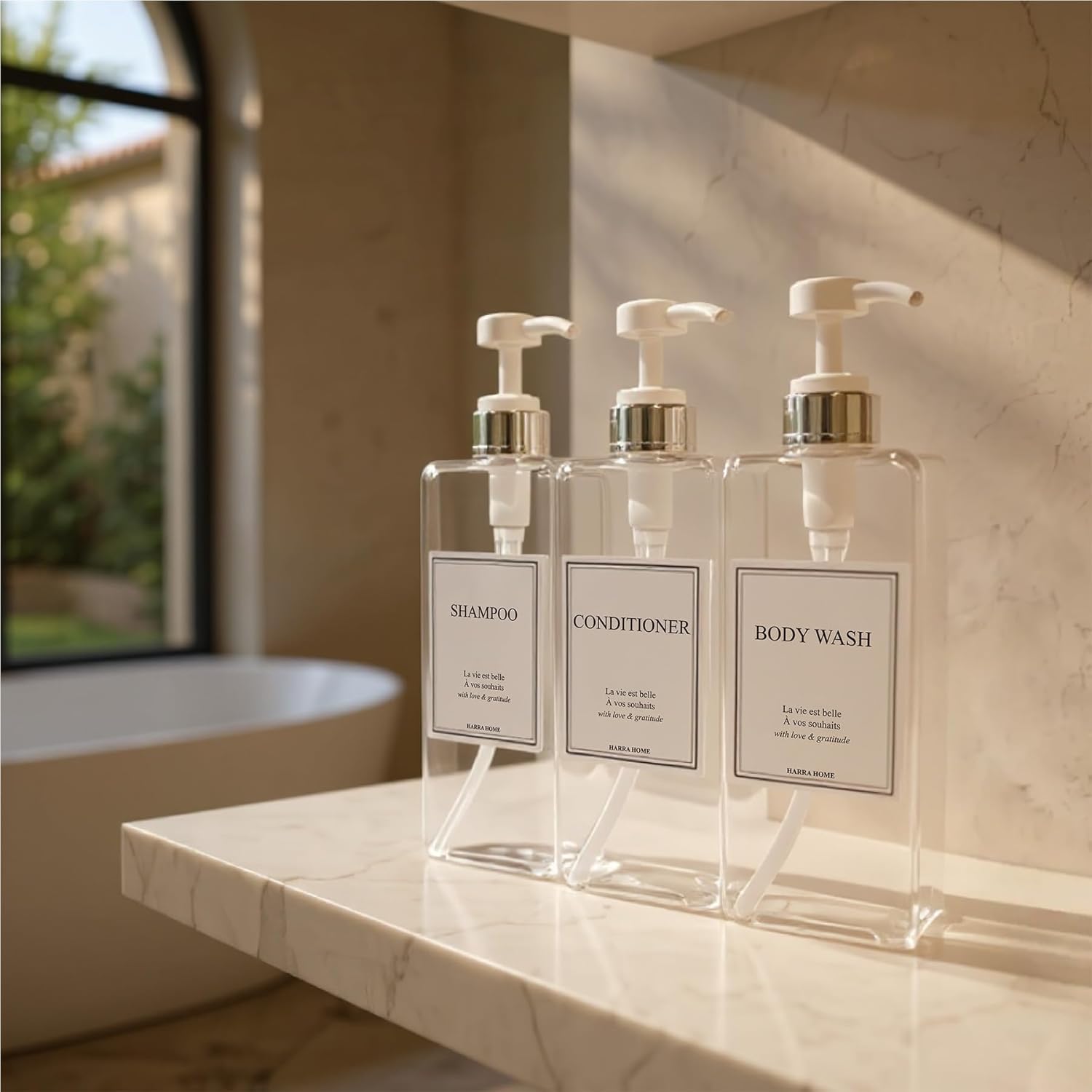 - ELEGANT & MODERN DESIGN — Elevate your bathroom decor with HARRA HOME bathroom accessories that create an instant hotel-style bathroom aesthetic. These decorative pump dispensers transform any shower and sink area into a modern bathroom sanctuary without breaking the budget. Perfect bathroom organizers that eliminate clutter from multiple bottles while adding elegance to your space.