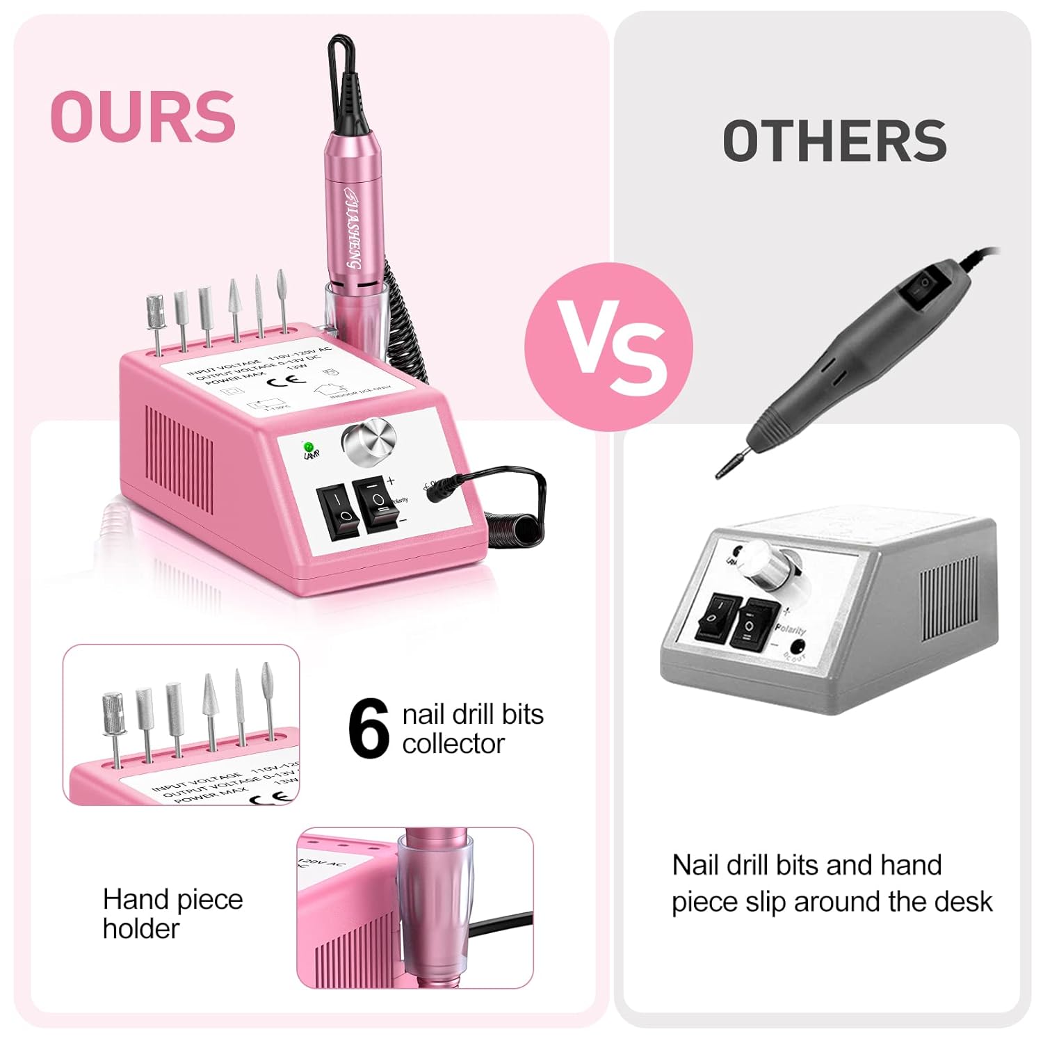 - Powerful Varying Speed Nail Drill Machine: Max speed up to 20,000 RPM, efficient for natural acrylic nails, gel polish dip powder nails and cuticle removal. Adjust speed with control knob, twist lock chuck system for easily change nail drill bits