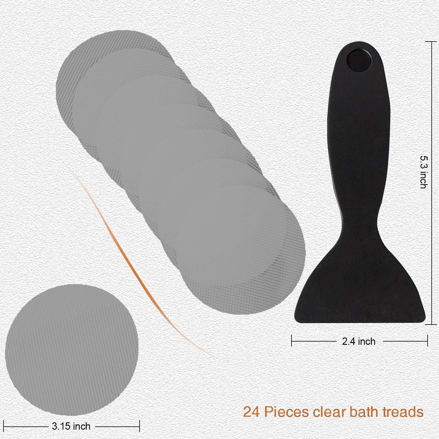 - Package Contents: Includes 24 round non-slip shower stickers (diameter 8.0cm or 3.15-inch) and 1 silicone scraper (5.2"Ă2.4"/13.2cmĂ6.1cm).Designed to support safer use in tub/shower areas
