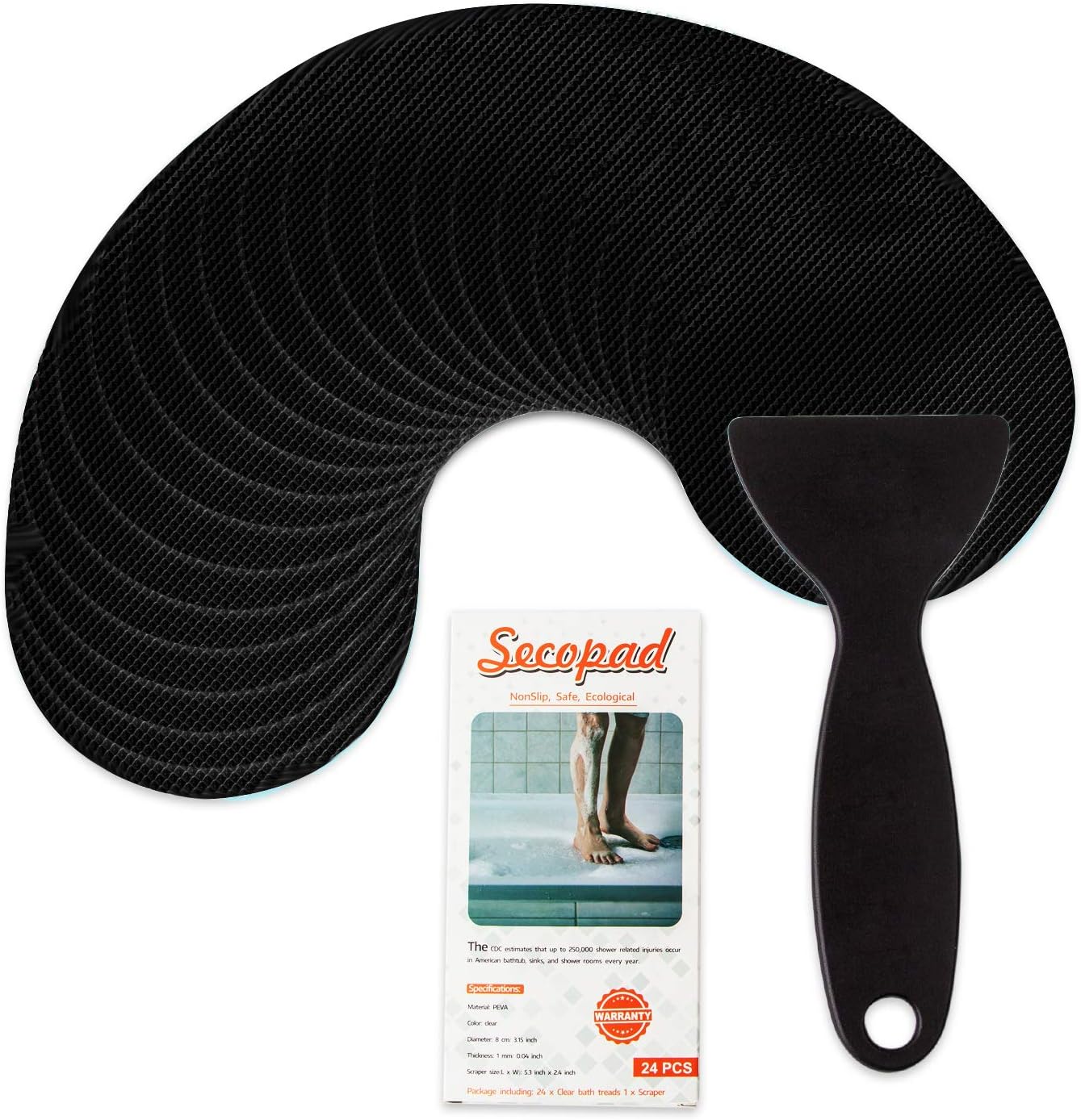 Non-Slip Bathtub Stickers, 24 PCS Safety Bathroom Tubs Showers Treads Adhesive Decals Scraper (Black)