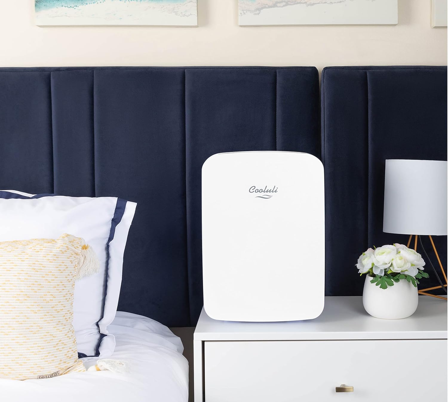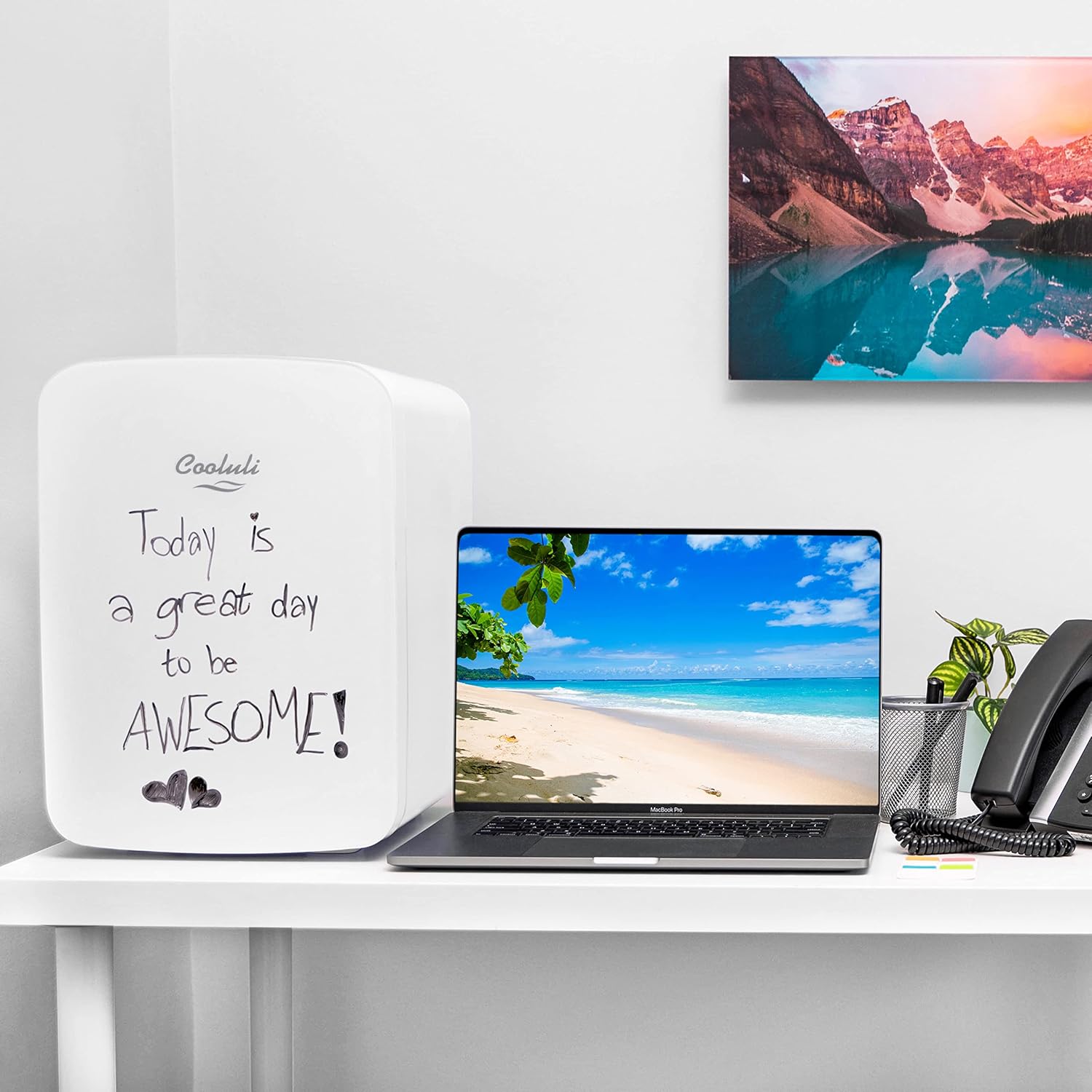 Cooluli 15L Mini Fridge for Bedroom, Car, Office Desk & College Dorm - 12V Portable Cooler & Warmer for Food, Drinks, Skincare - AC/DC Small Refrigerator with Glass Front, White