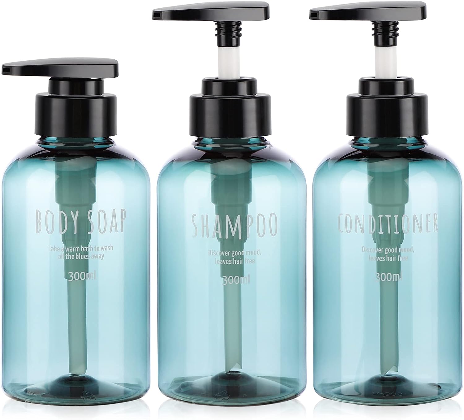 - 【Large Capacity】Each dispenser bottle holds 10.1oz 300ml reasonable large capacity to meet the whole family daily essential needs. Set of 3 packs of pre-printed water-proof bottles, indicating SHAMPOO, BODY SOAP, and CONDITIONER can help you identify them easily.