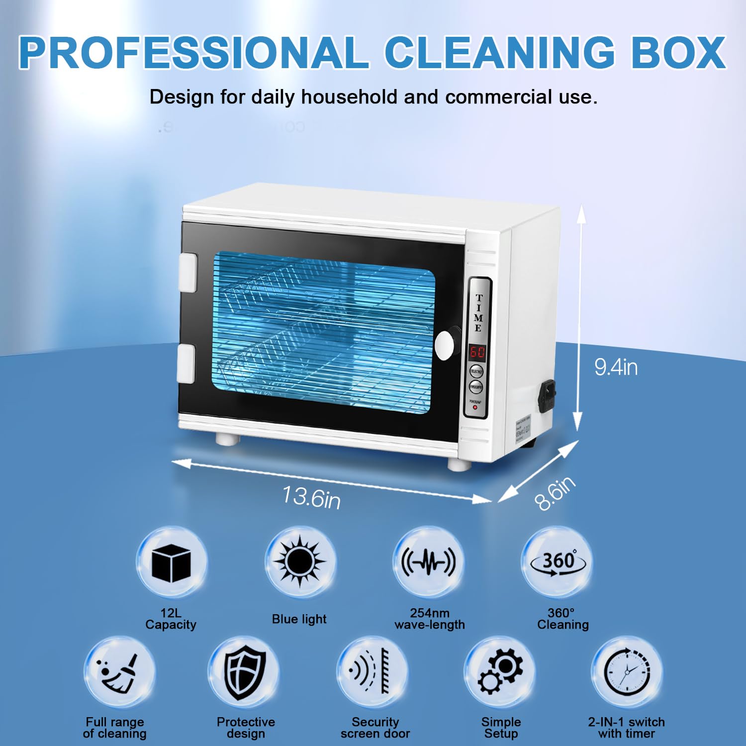 - đăLed Time DisplayăThe manicure cleaning box with a two-button setting, you can set the cleaning time from 5-60 minutes (5-minute intervals) according to your requirements to meet different needs. LED display and see-through window provide an easy check on the working process. With the Oven Pro thereâs no having to turn objects over or run your machine multiple times, and no tiny box barely larger than a cell phone.