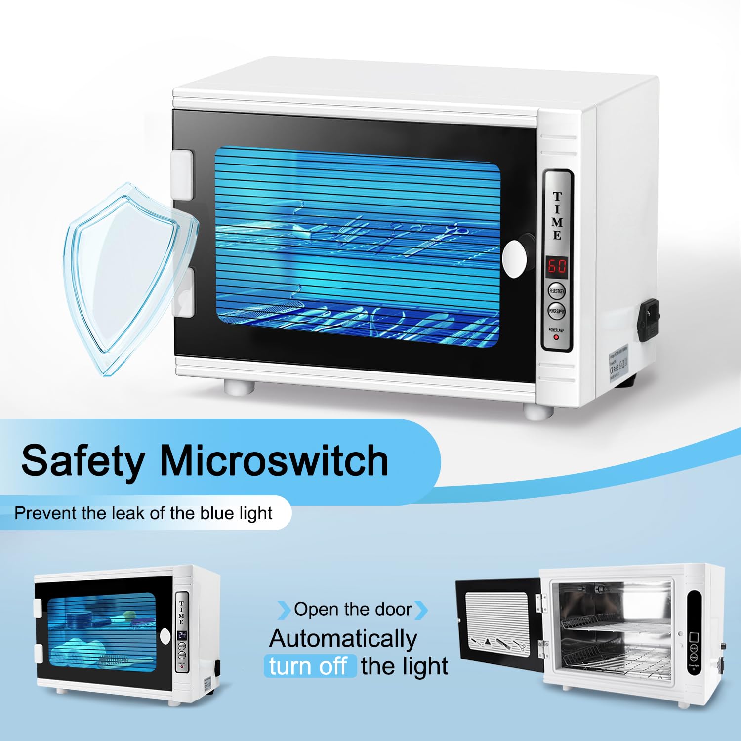 - đăProtect Your Healthy and StuffăThe oven pro uses blue light, not heat, so it is safe for all objects. The tight-fitting polarized door means no exposure to people in the room from the lamp. The Cleaning Machine have a smart induction switch which can be automatically turned off the LED light when you open the door cover, it won't hurt your eyes and skin, The inside of the device uses light, not heat, its safe for all items.