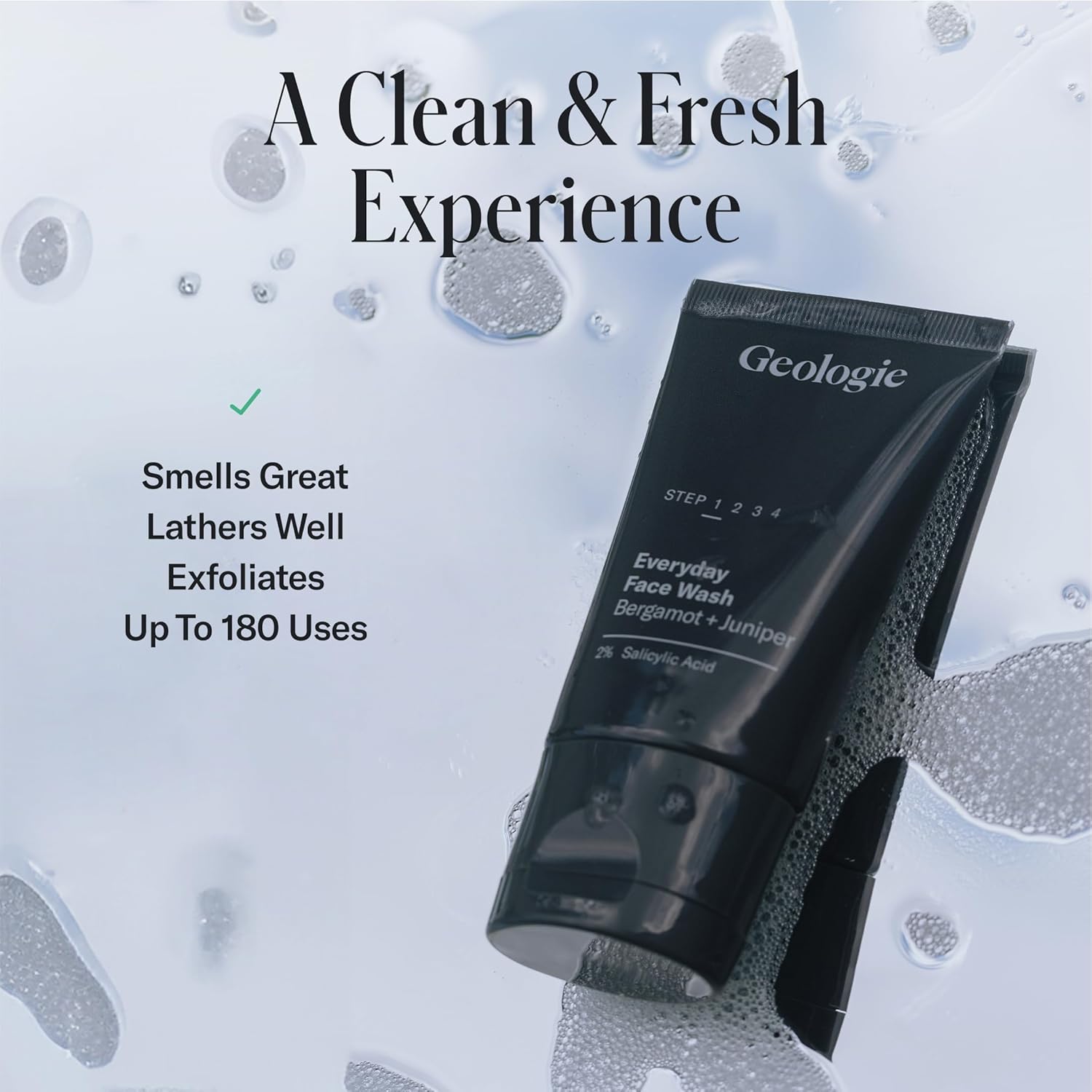 Geologie 2% Salicylic Acid Face Wash Bergamot + Juniper Scent | Facial Cleanser for Men & Women | Acne & Oil Control | Deep Cleansing & BHA Exfoliating Face Wash | 2-Pack