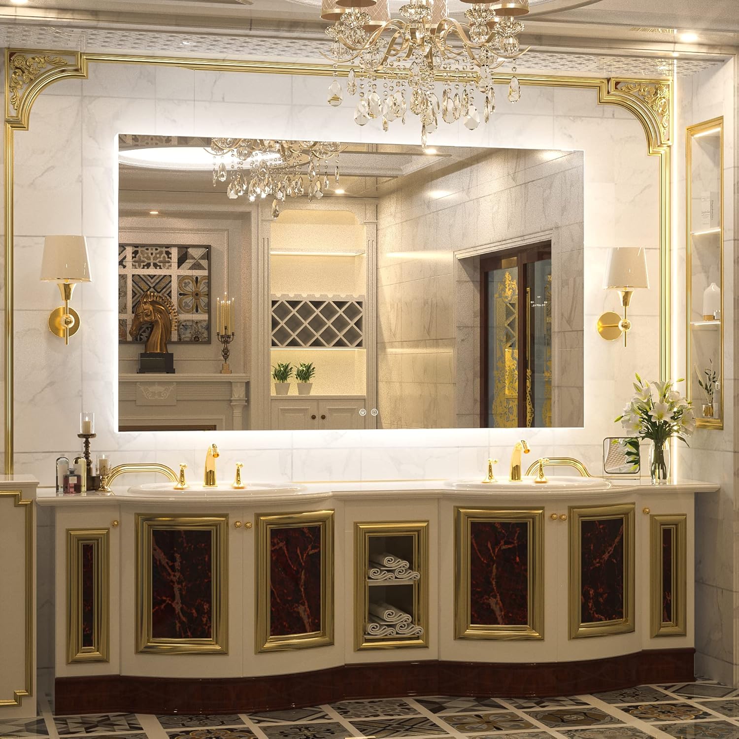 TETOTE 60 x 36 Inch LED Backlit Bathroom Vanity Mirror with Light,Anti-Fog,Dimmable,CRI90+,Touch Button,Water Proof,Large,Lighted Mirror,Horizontal/Vertical Wall Mounted