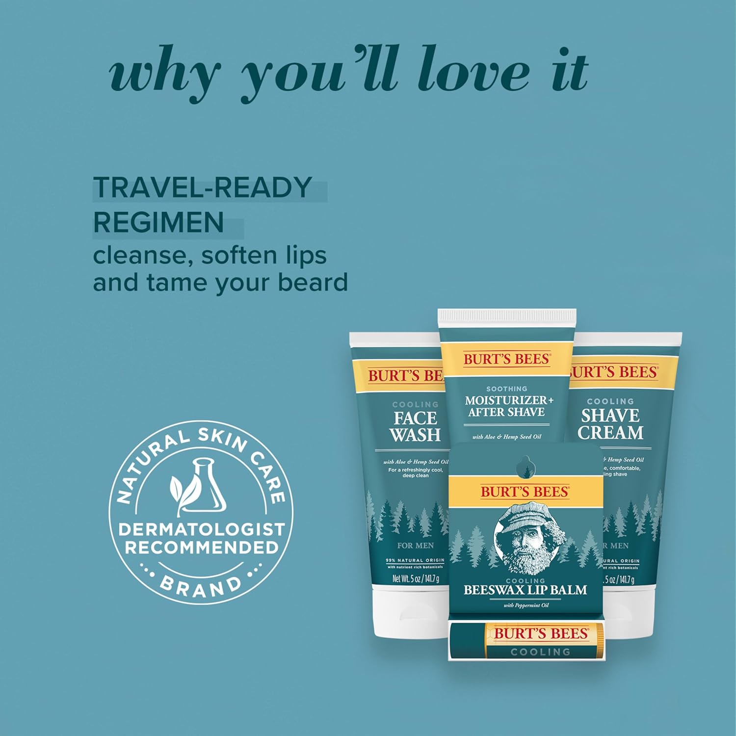Burt's Bees Gifts Ideas - Grooming Essentials Kit, 4 Products for Men - Cooling Face Wash, Shave Cream, Soothing Moisturizer After Shave & Original Beeswax Lip Balm