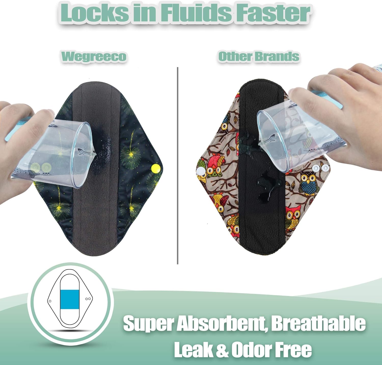 wegreeco Reusable Menstrual Pads - Reusable Sanitary Pads | Reusable Panty Liners | Soft Cloth Menstrual - 6 Pack with 1 Cloth Mini Wet Bag (Medium, Dandelion