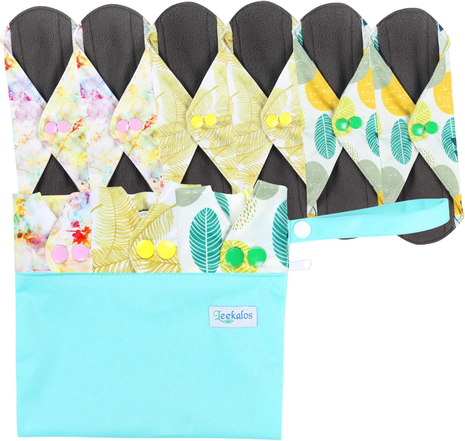 Leekalos Reusable Cloth Mini Wet Bags - Bamboo Reusable Sanitary Pads | Light Incontinence Pads - Pack of 6