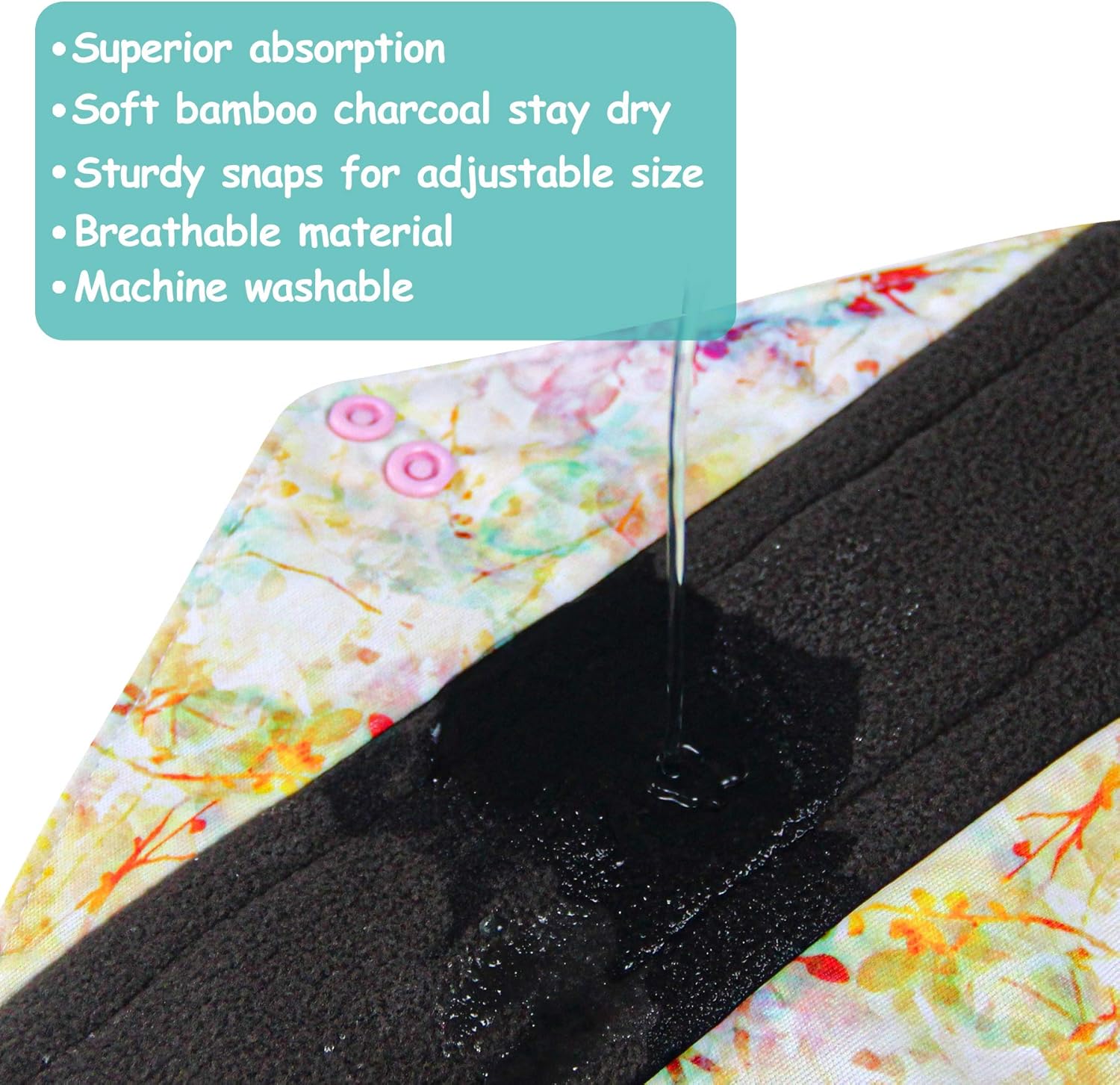 - Two Snaps Design for better fasten the cloth panty liners around your underwear and make it stay in place well.