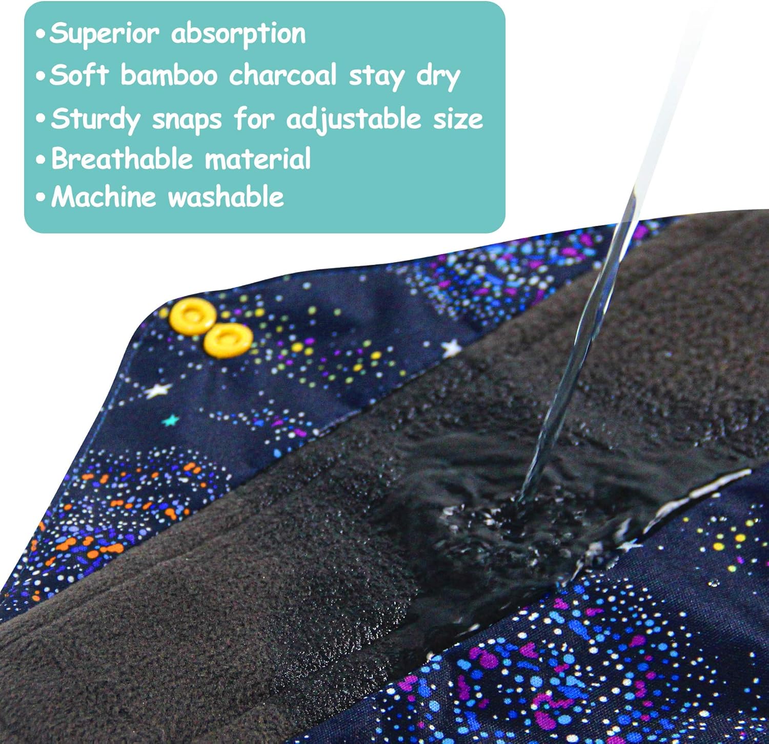 - Two Snaps Design for better fasten the cloth panty liners around your underwear and make it stay in place well.