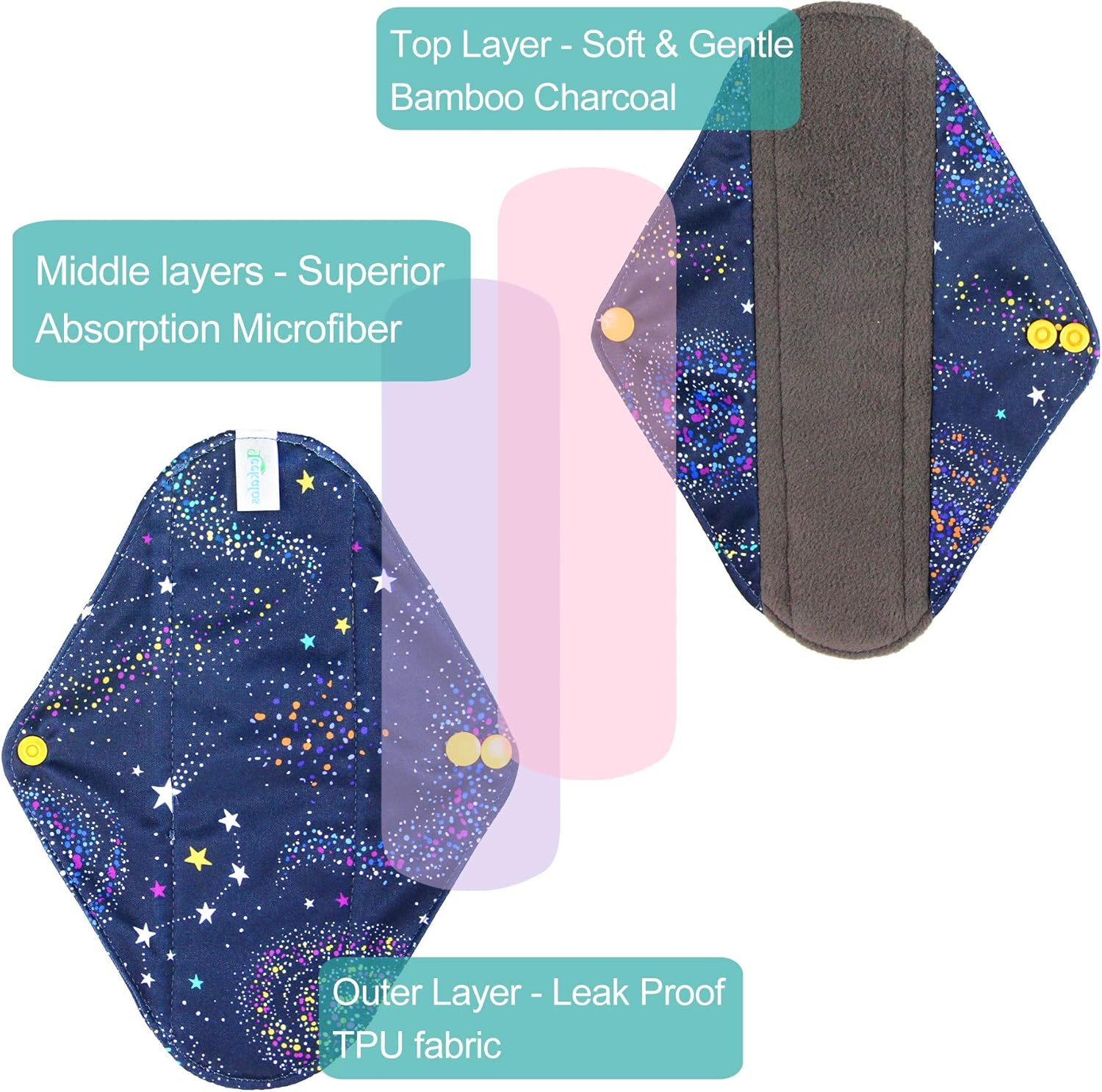 - Leak-free Outer Layer: Leak-free outer of reusable feminine pad catch heavy flow for hours,never feel embarrassing.