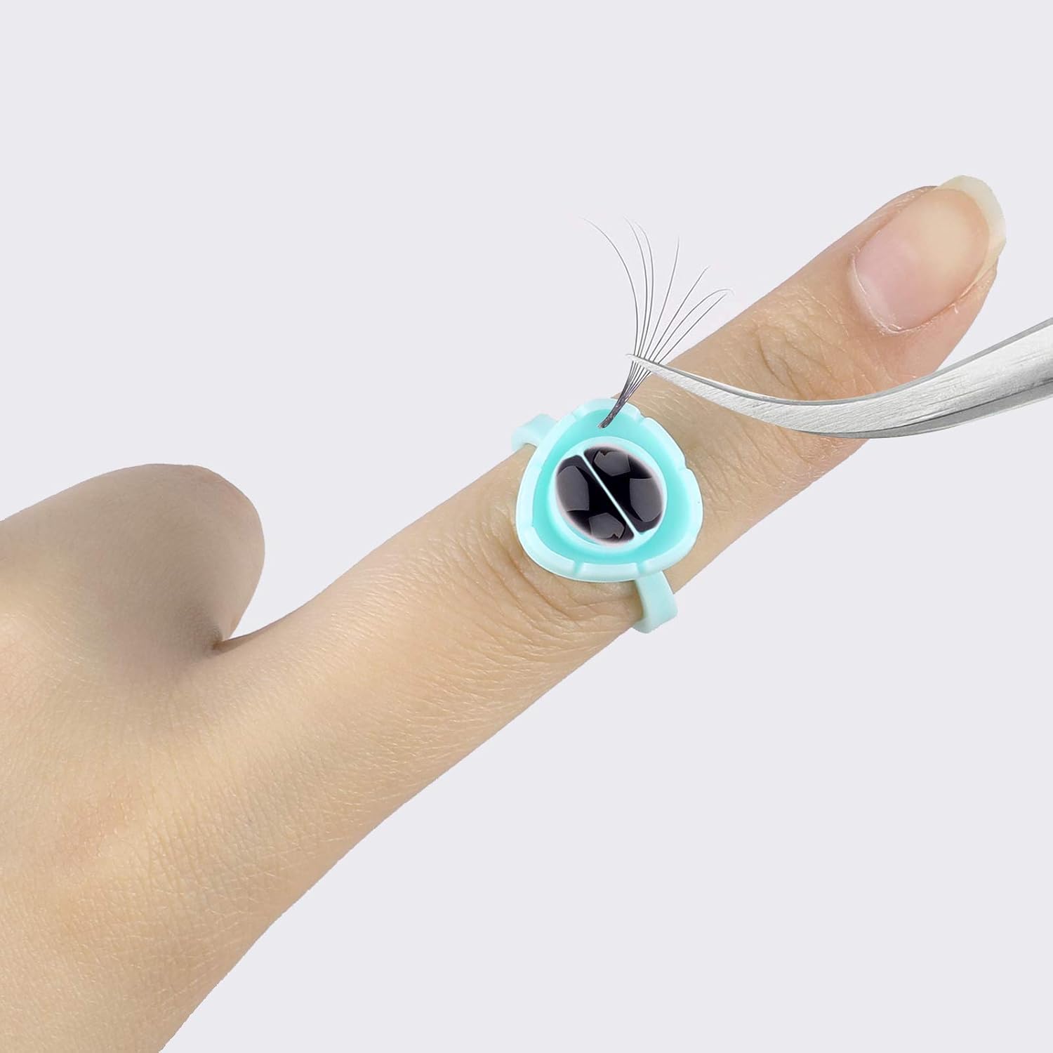 - 2 in 1 Holder for Glue and Individual Lashes: The smart glue cups have a gap of smart design at the ring which can fix the eyelashes. You can dip the glue so convenient during the application procedure. Also you can still wear it on your finger as usual.