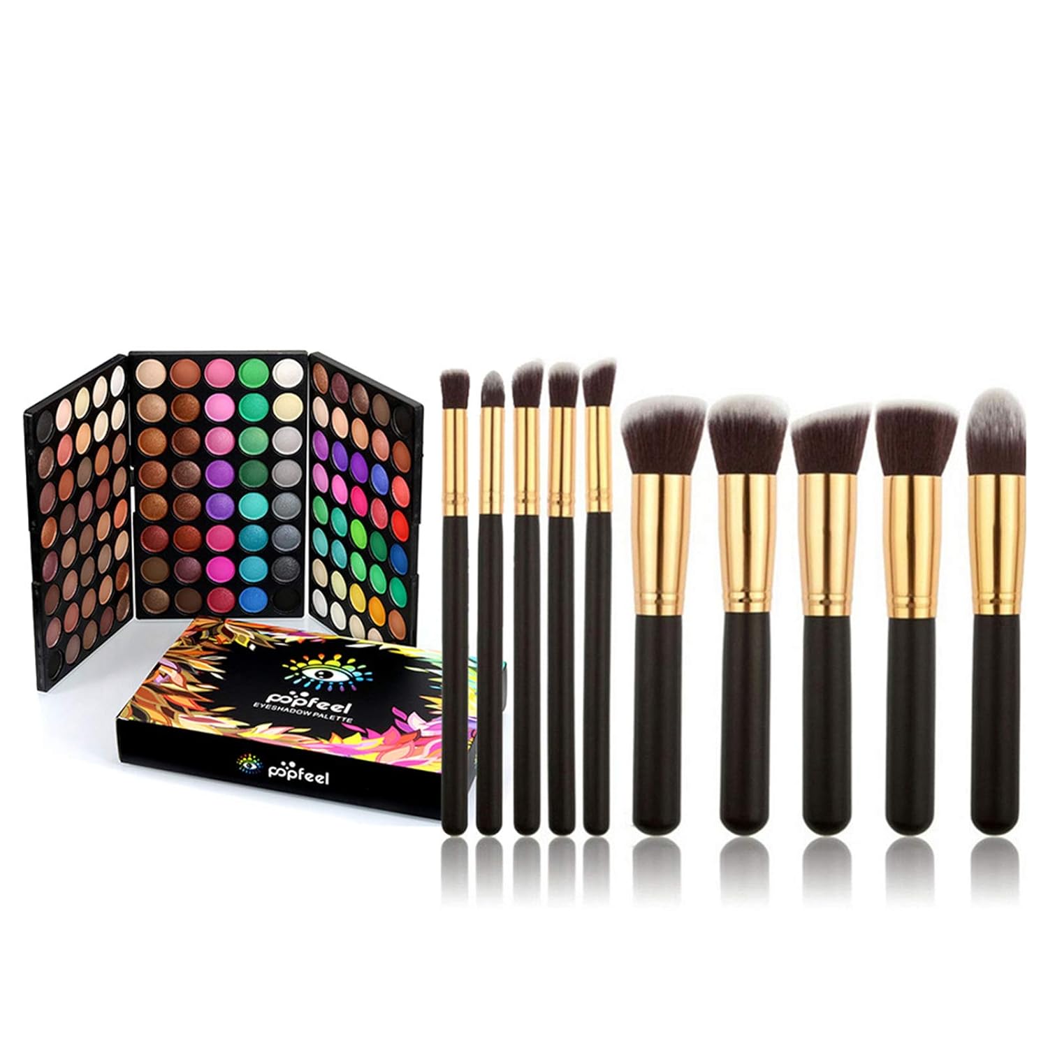 120 Color Eyeshadow Palette Kit with 10 Pcs Foundation Makeup Brush, Professional Daily Use Colorful with Velvety Texture Eyeshadow Palette, Highly Pigmented Waterproof Long Lasting Makeup