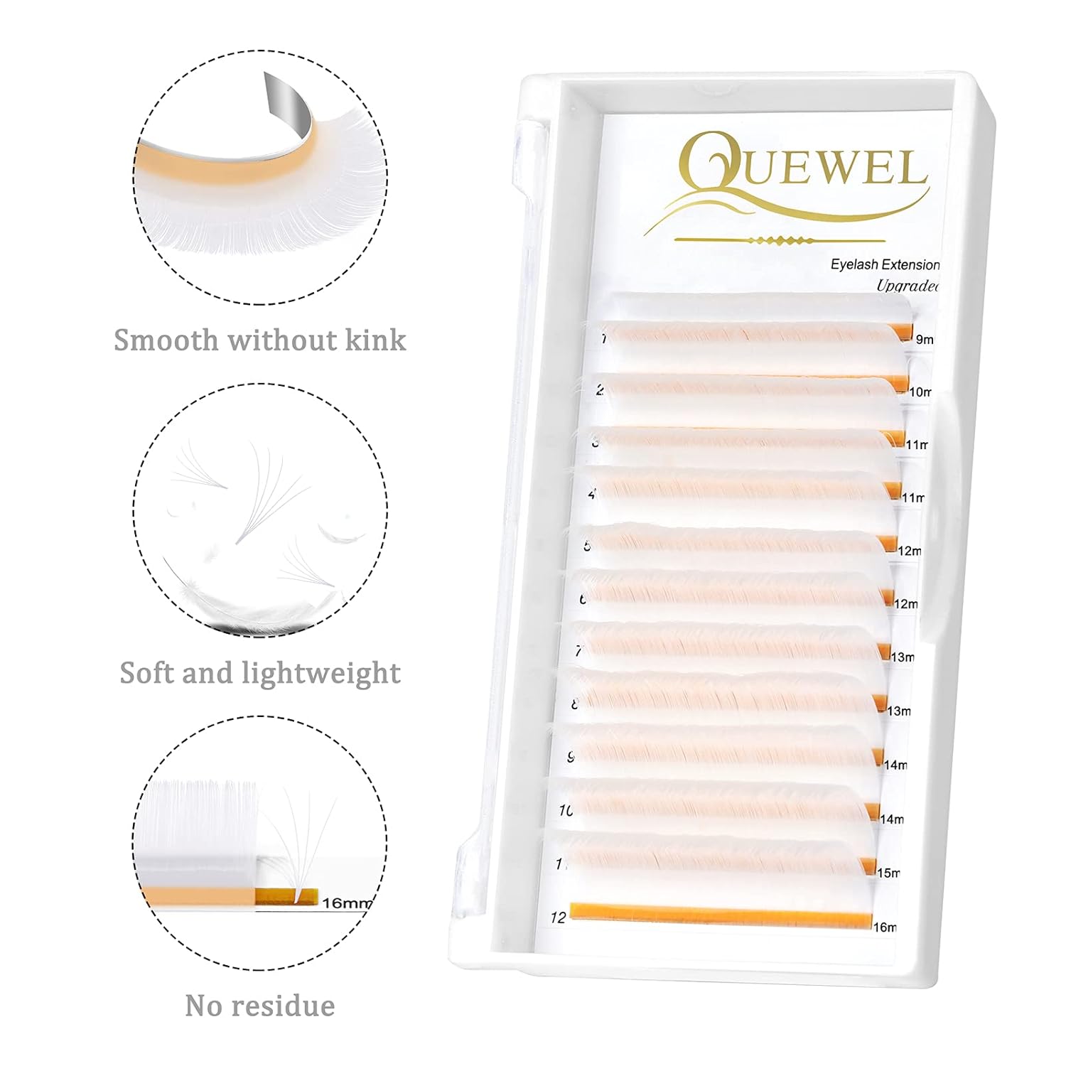 - COLOR LASHES-EASY FAN VOLUME LASHES : QUEWEL white mega volume lash extensions,0.07 D Curl,mixed 9-16mm,12 rows per eyelash tray,including 9mm*1/10mm*1/11mm*2/12mm*2/13mm*2/14mm*2/15mm*1/16mm*1.