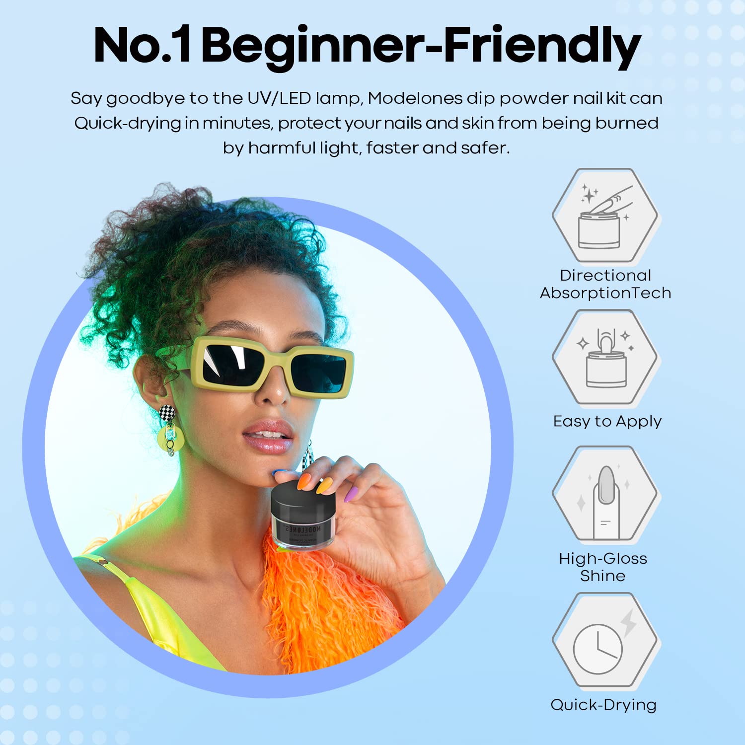 - đ¤SAFETY & TIME SAVING: MODELONES Black Dip Powder doesnât need nail lamp to cure, which can avoid making your skin black. It's a faster way to paint your nails.