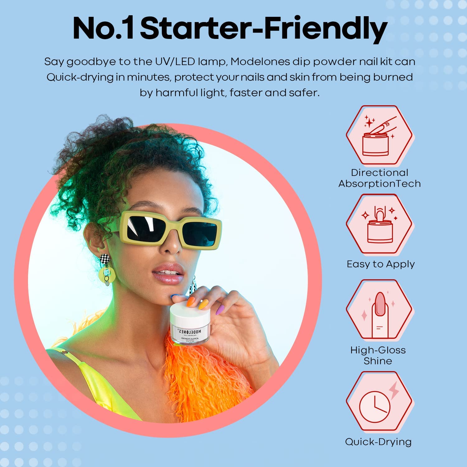 - đ¤SAFETY & TIME SAVING: MODELONES Clear Dip Powder doesnât need nail lamp to cure, which can avoid making your skin black. It's a faster way to paint your nails.