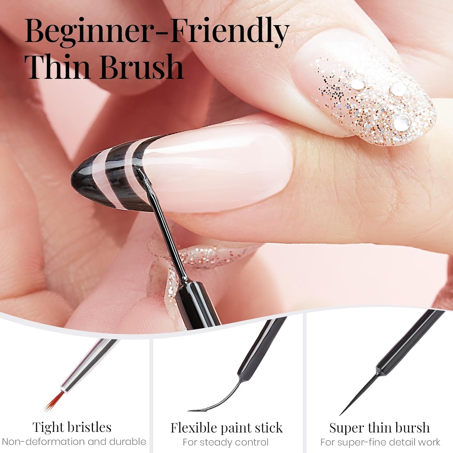 - Built-in Thin Brush: Each bottle has a thin pen brush, The brush is soft and slender, with good resilience, which can draw fine lines, change angles, and paint various curves at will, and operate smoothly.
