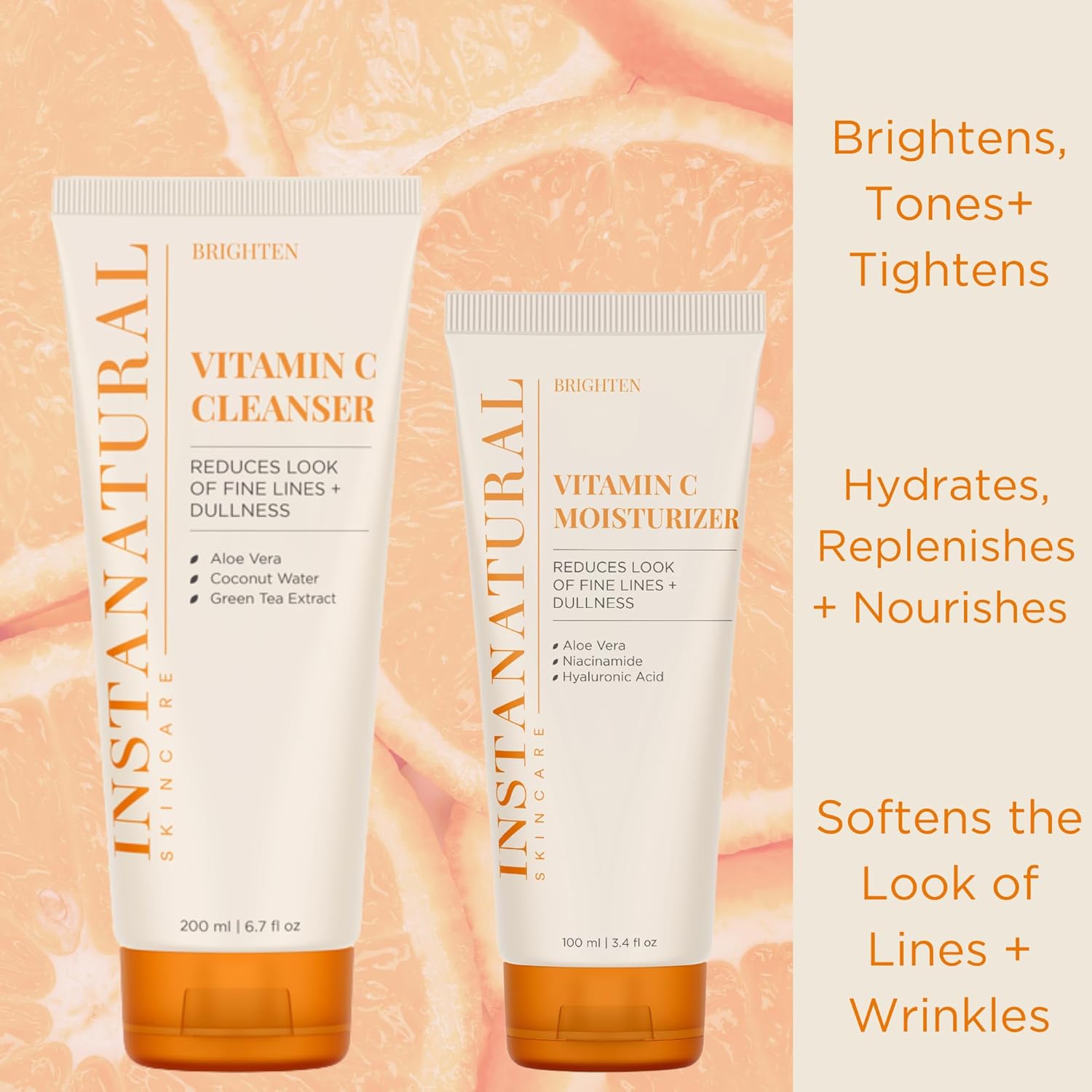 InstaNatural Vitamin C Cleanser and Moisturizer Kit, Brightens, Reduces the Look of Fine Lines and Uneven Texture, with Aloe Vera and Botanical Extracts