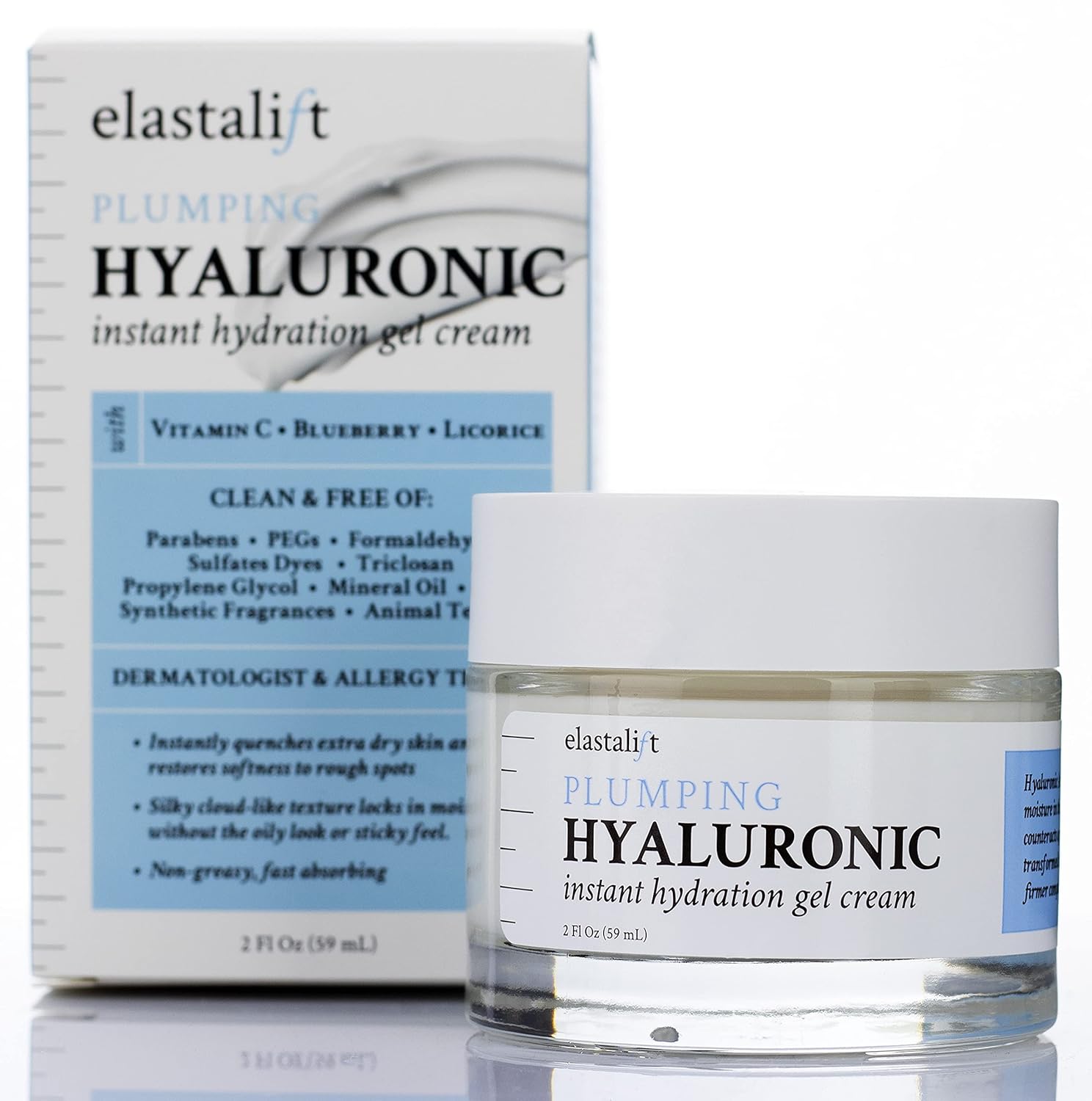 - RELAX, HYDRATE, RENEW, & RESTORE – Dermatologist-Tested, Clinically-Tested, Cruelty-Free, Non-Greasy, & PH Balanced Formula. Free From: Parabens, Drying Alcohols, PEGs, Sulfates, Dyes, Propylene Glycol, & Talc. Manufactured in our FDA-Regulated & Inspected Laboratory in Chicago, USA. We are confident that you'll love the way this Elastalift Hyaluronic Acid Face Gel makes your skin look and feel, and we stand behind our product with a satisfaction-guarantee.