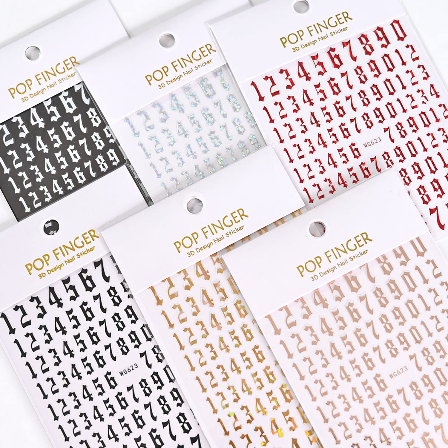 - ELEGANT NAIL ART - Our number nail design stickers include black, white, gold, red, laser, mix-size number. Itâs charming to see a number pattern on you finger nails or toe nails.