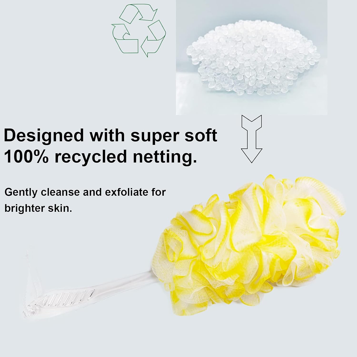 - (100% RECYCLED PE):Our exfoliating loofah brush is designed by super soft 100% recyled netting.You can use it safely. ANTI-SLIP design that you can grab the ends and clean your back effortless and won't slip out of your hand.