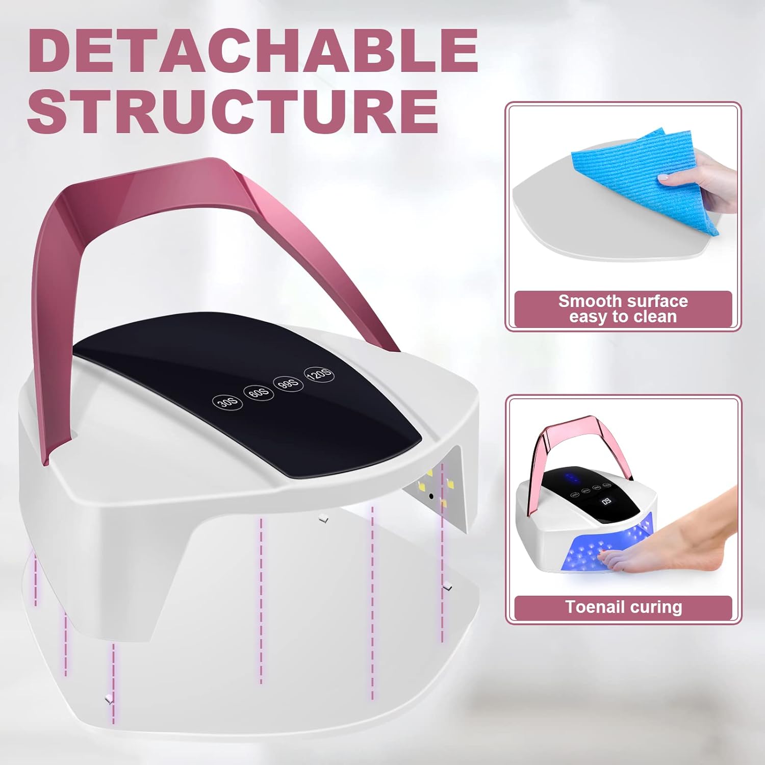 - Removable & Auality AssuranceďźThe detachable base is easy to clean and keep sanitary.This led nail lamp uses premium quality materials.
