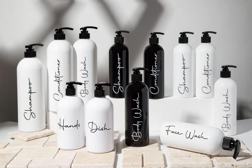 - LUXURIOUS HIGH-END STYLE APPEAL - A luxurious high-end look offsets your bathroom beautifully with elegant black script on a clean white background. Gorgeous silkscreened labels are permanent and peel-proof. Go from cramped and cluttered to soothing and spa-like.