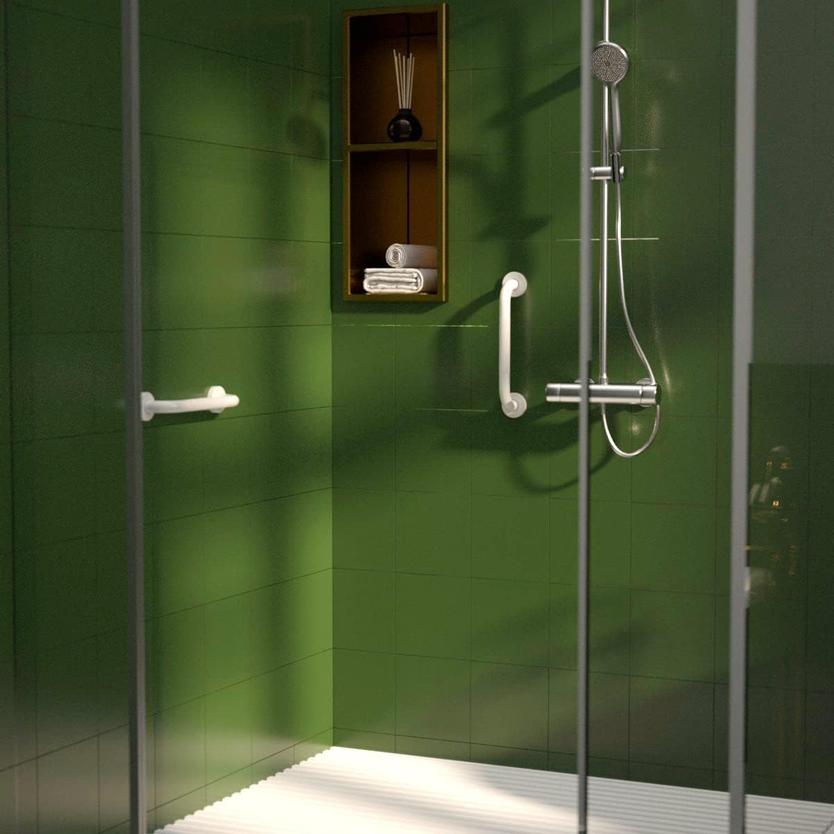 - Use 12 inch anti slip Oil Rubbed White knurled safety grab bars in the bathroom, kitchen, along stairways, or in the laundry room for additional fall prevention, especially for the handicap, elderly, pregnant women, and children. Not only apply to use as bath shower grab bar, but also can hold clothing,etc.