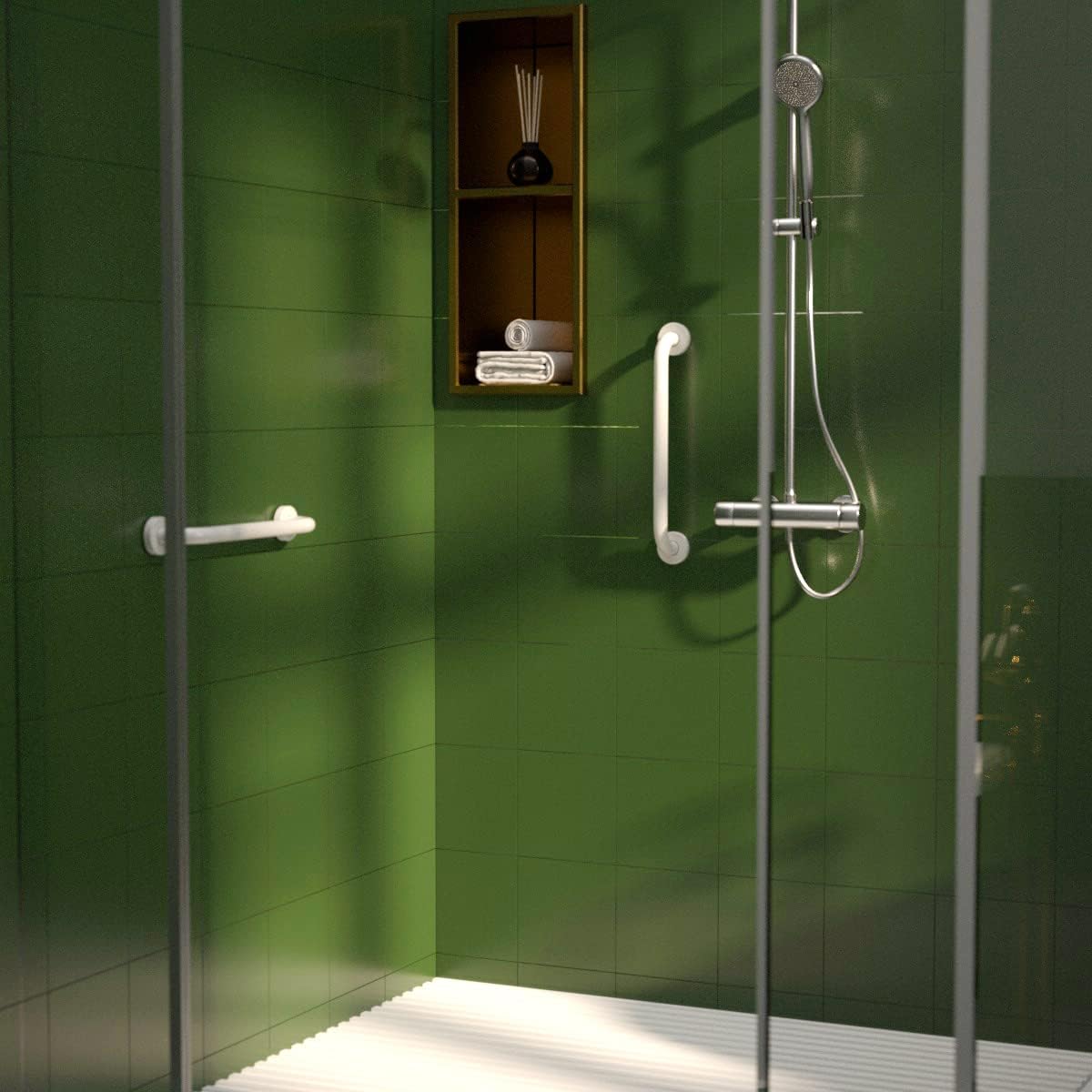 - Munzong 2 Pack 16 Inch Oil Rubbed White Stainless Steel Shower Grab Bar; the non slip knurled surface on middle is superior for safety when you have soapy hands and need to steady yourself