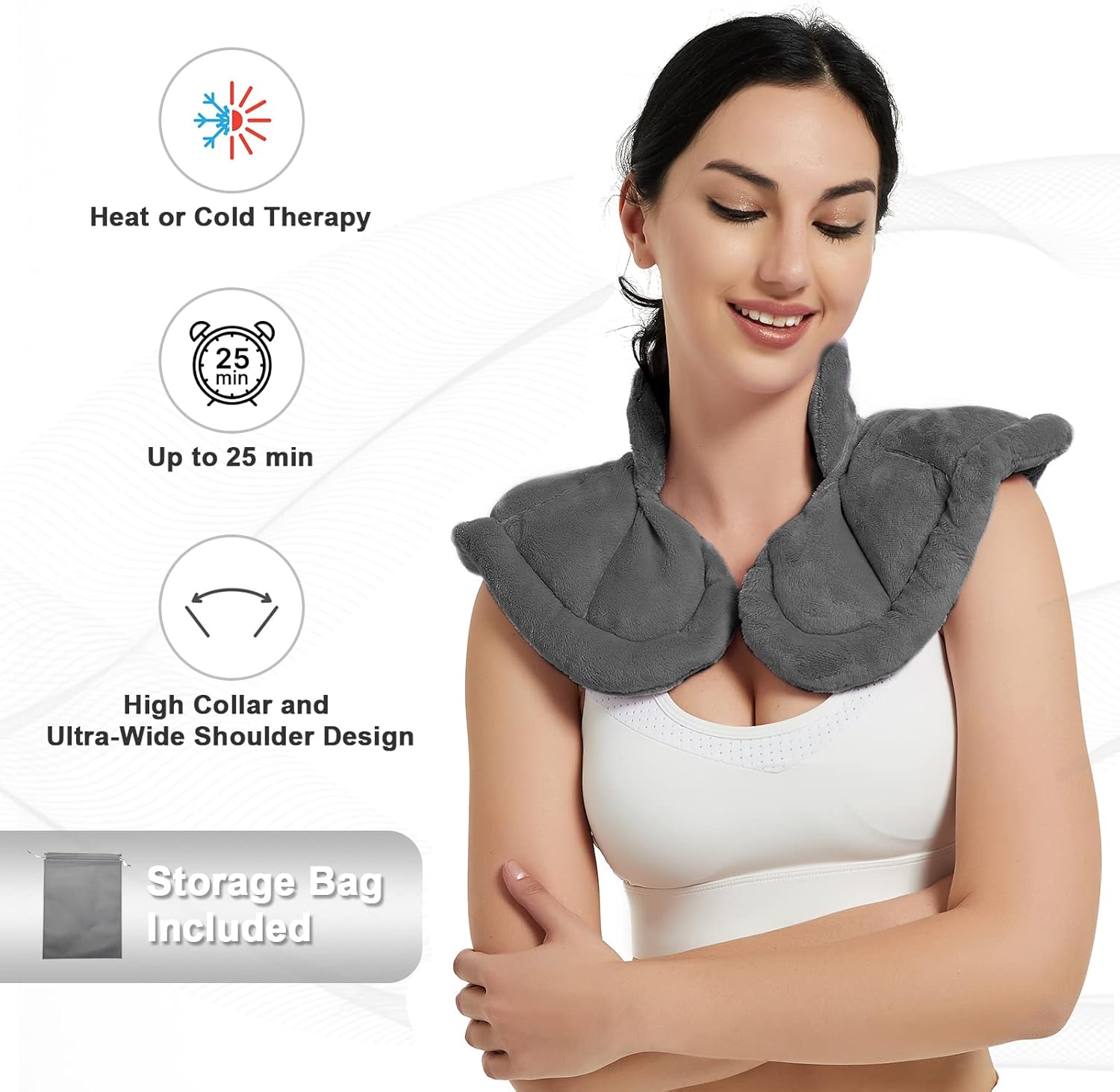 Neck Heating Pad Microwavable for Shoulders, Warmer Wrap Microwave Heating Pad for Neck and Shoulders for Pain Relief - Gray