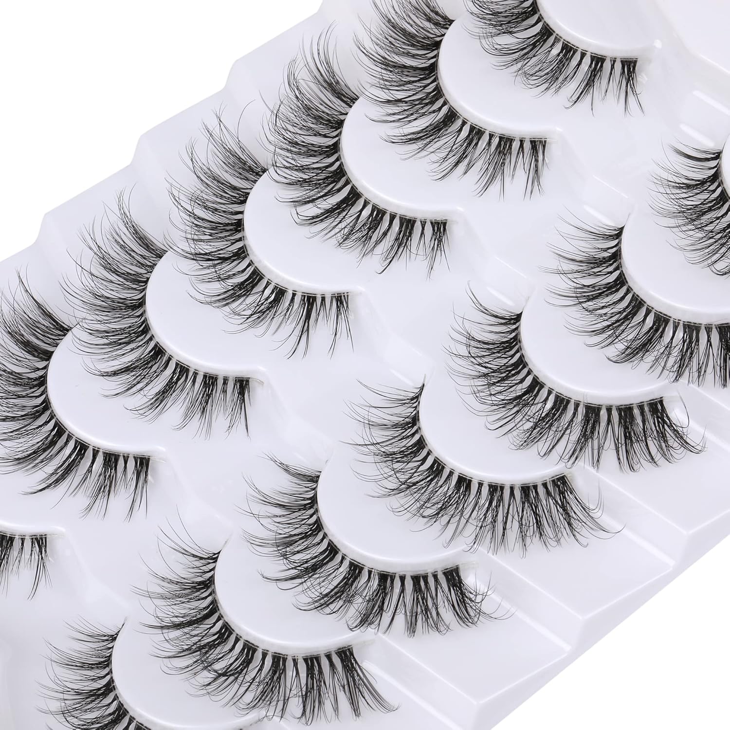 False Eyelashes with Clear Band Faux Mink Lashes Natural Look 3D Volume Wispy Fake Lashes Pack by Kiromiro 7 Pairs