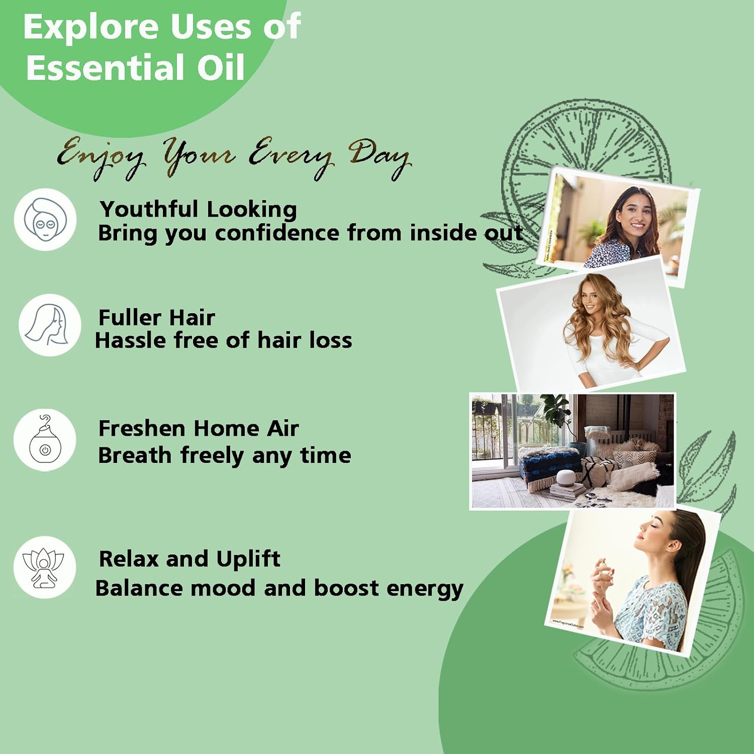 - HIGH QUALITY GLASS BOTTLE WITH EASY USE DROPPER:All of our essential oils are bottled in 100ml U/V resistant amber glass bottles to protect the oil against sunlight, included an easy use dropper, you can get the exact amount of oil without any waste.