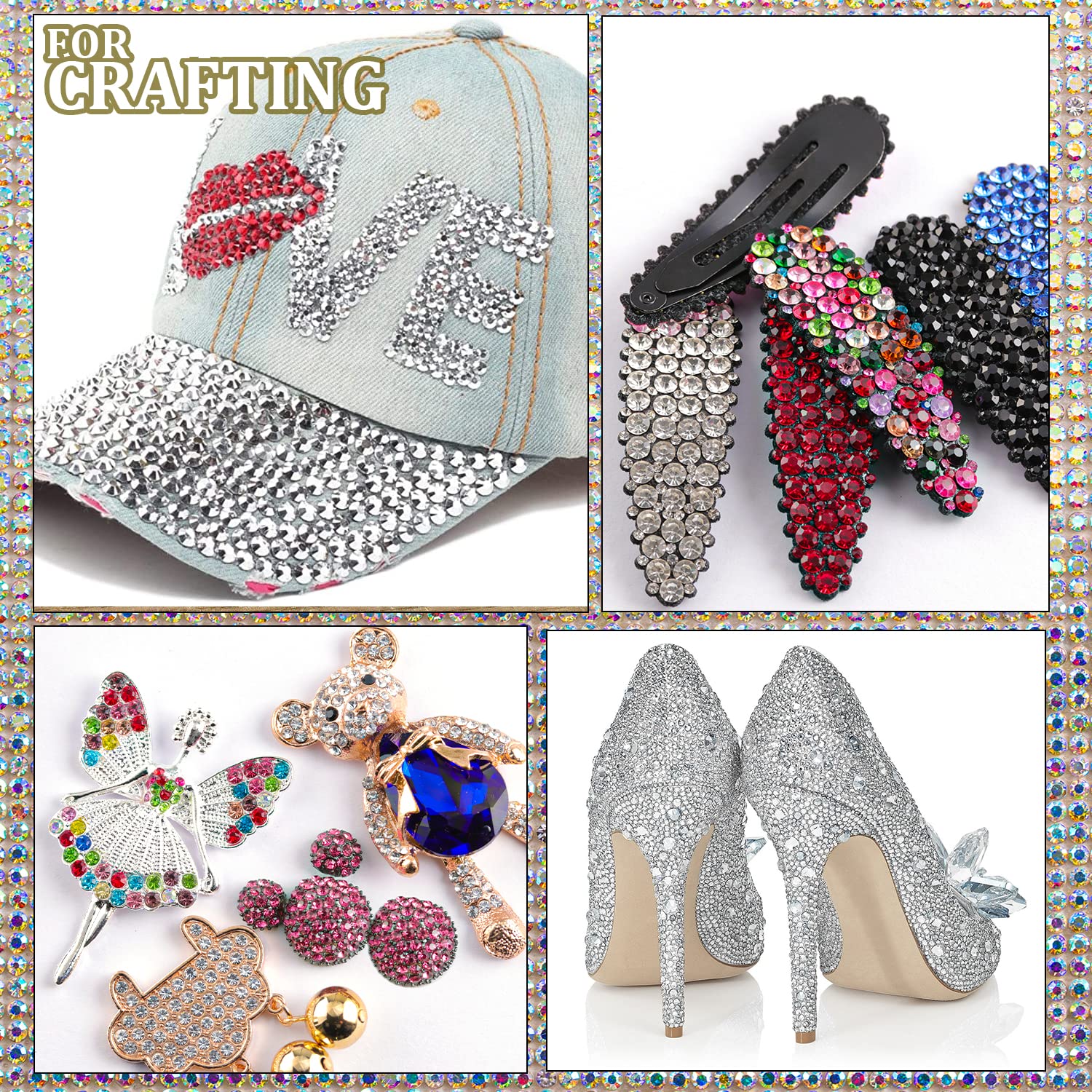 - ❤WIDE APPLICATION --The Crystal Iridescent Gems Nail Rhinestones Are Perfect for Creating 3D Nail Art or Decorating Jewelry, Makeup, Body Art, DIY Crafts, Wedding Dress or Shoes, Cell Phone Cases, Glasses, Greeting Cards, Bags, Guitars, Scrapbooks etc.