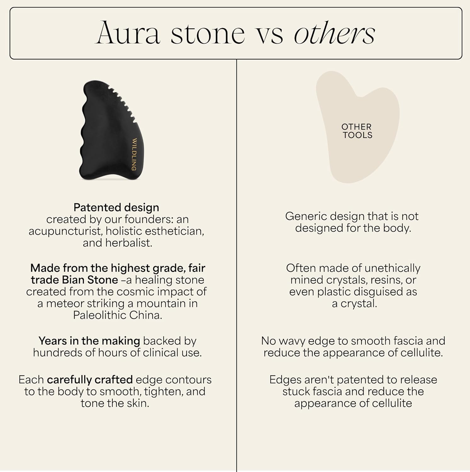 Wildling Aura Stone Gua Sha Body Stone I Body Massage Stone to Tighten, Tone, Sculpt + Smooth I Patented Design Crafted with 100% Authentic Bian Stone
