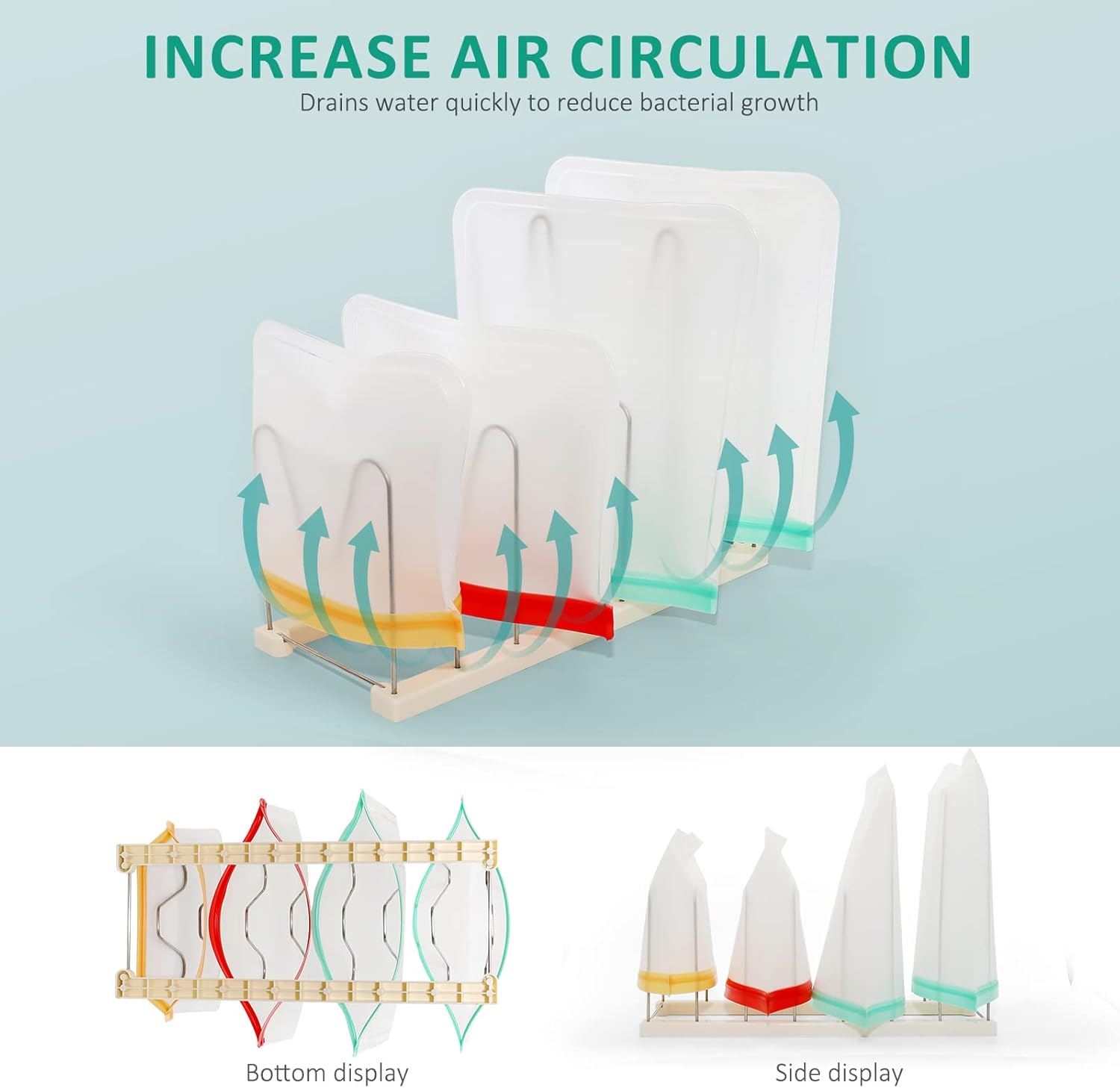Plastic Bag Drying Rack, Reusable Bag Drying Rack for Silicone Bag & Ziploc Bag, Bottle Dryer Rack for Gloves & Glasses, Pan Lid & Cutting Board Organizer