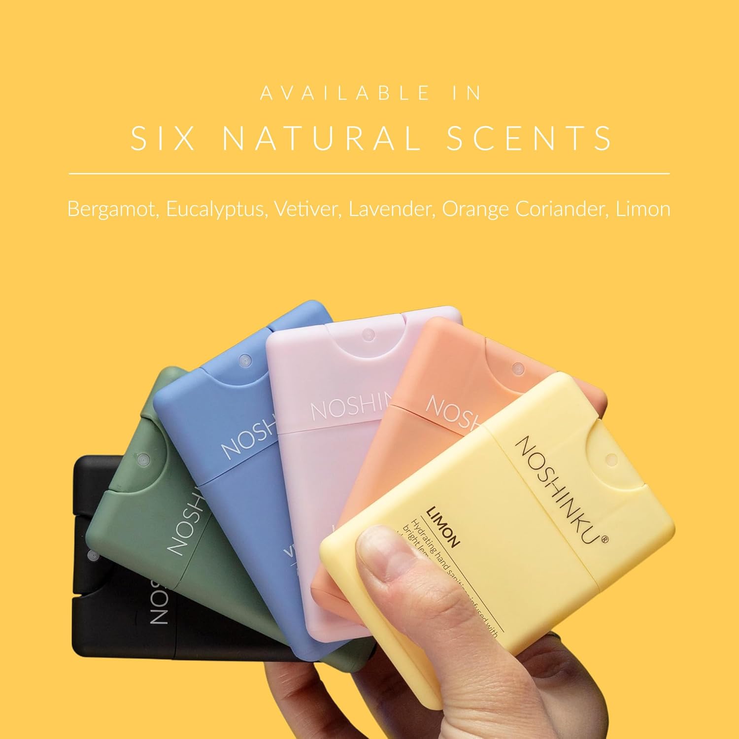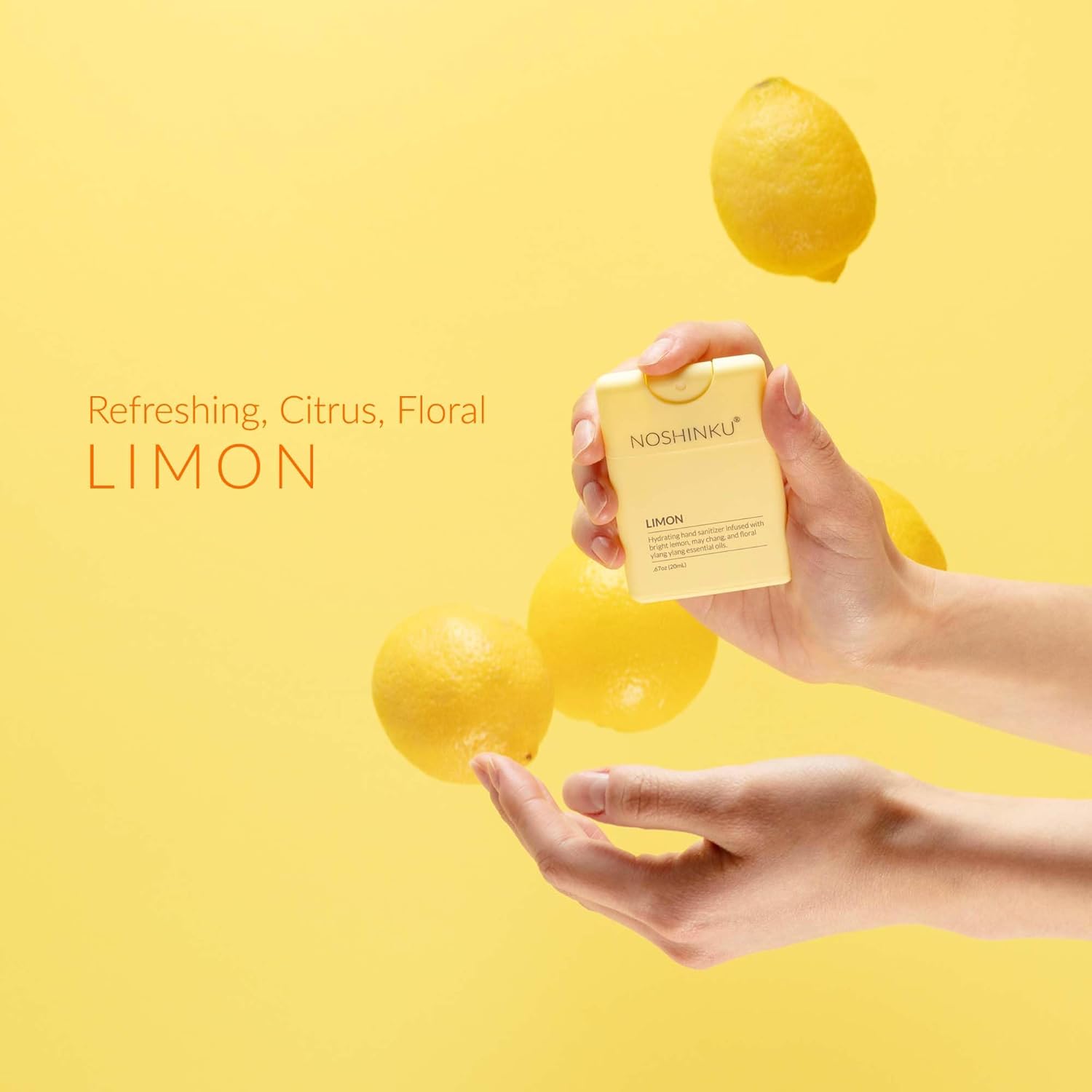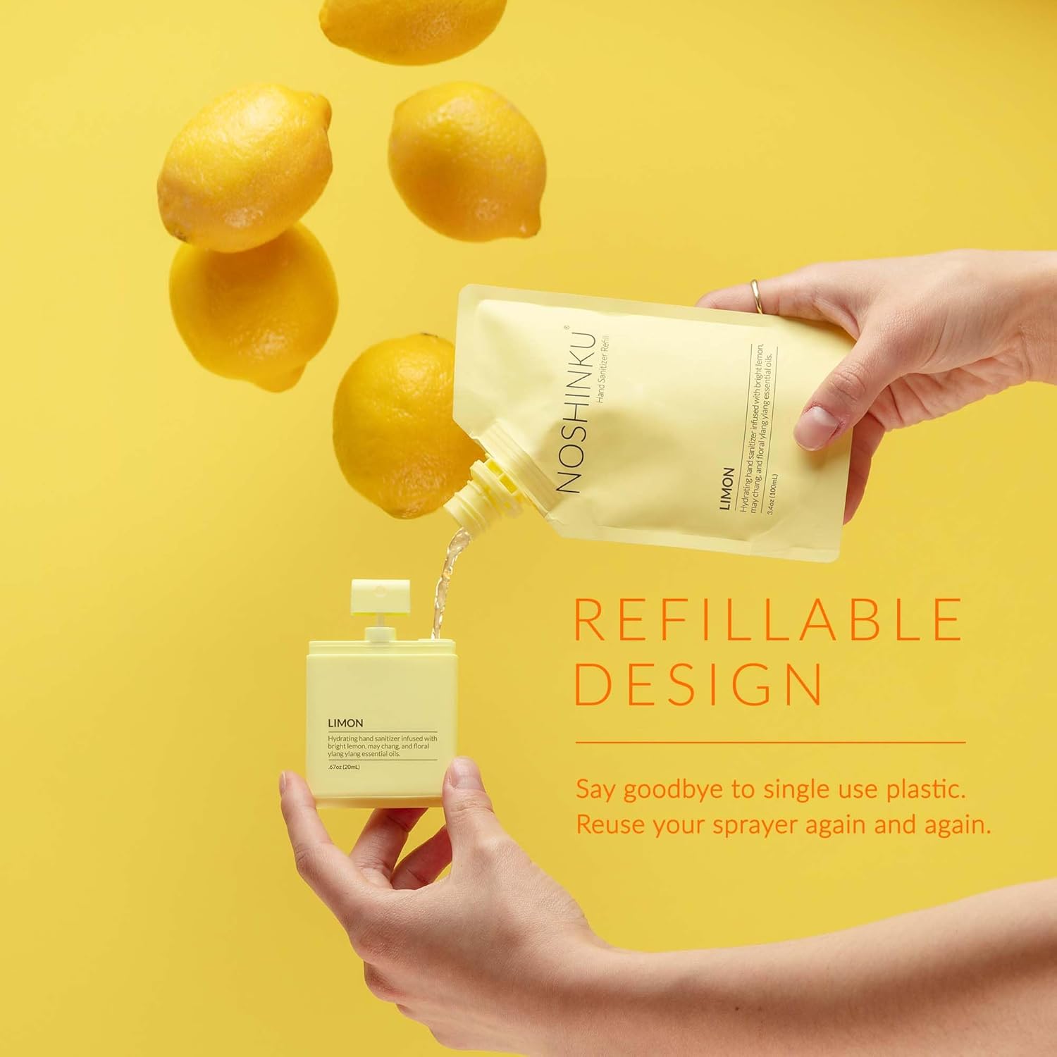Noshinku - Refillable Hand Sanitizer Limon 3-Pack, Travel Size Spray with Hydrating Botanical Oils, Natural Ingredients, All Natural Fragrances, Sugarcane Derived Alcohol, No Parabens, No Dyes