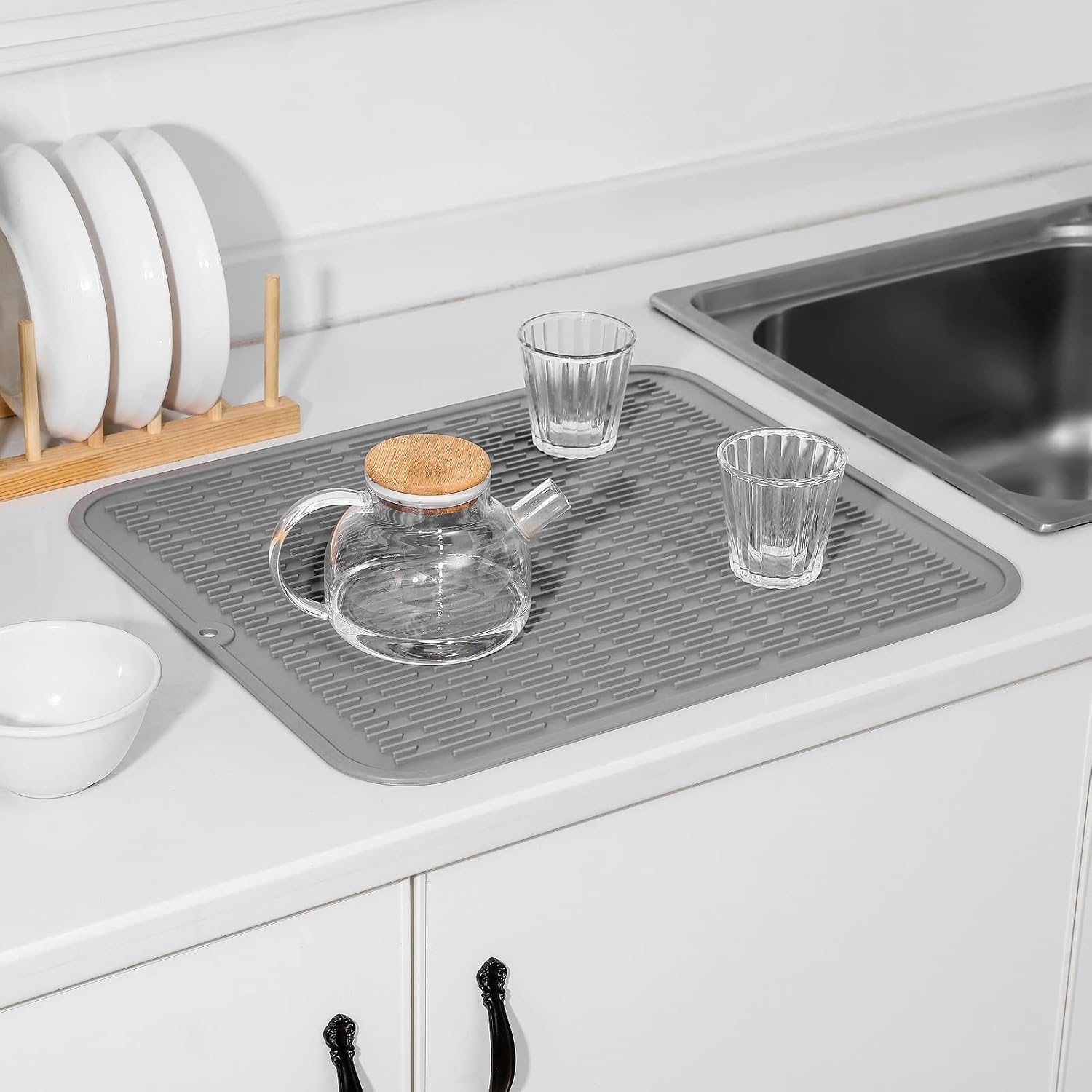 Silicone Dish Drying Mat for Multiple Usage,Easy clean,Eco-friendly,Heat-resistant Silicone Mat for Kitchen Counter or Sink,Refrigerator or Drawer Liner Grey 2XL 24 inches x 18 inches