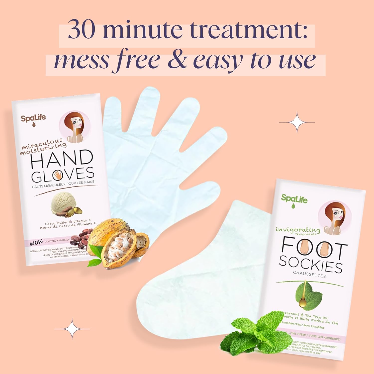 SpaLife Moisturizing Hand Gloves and Foot Sockies Bundle - 4 Hand Gloves & 4 Foot Sockies Set for Hydrating Dry, Cracked Hands and Feet - Repairing Skincare Mini Gift Set